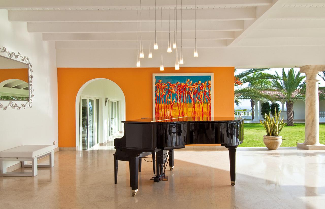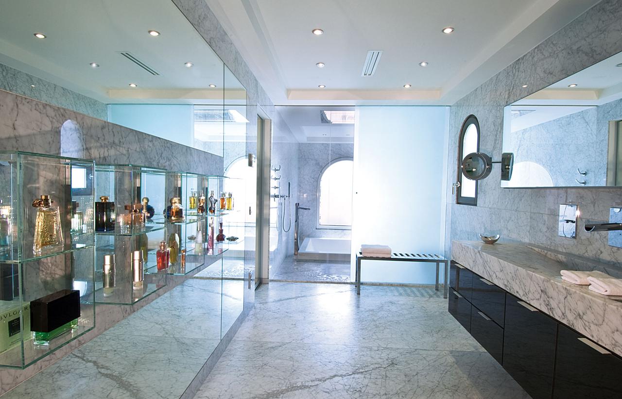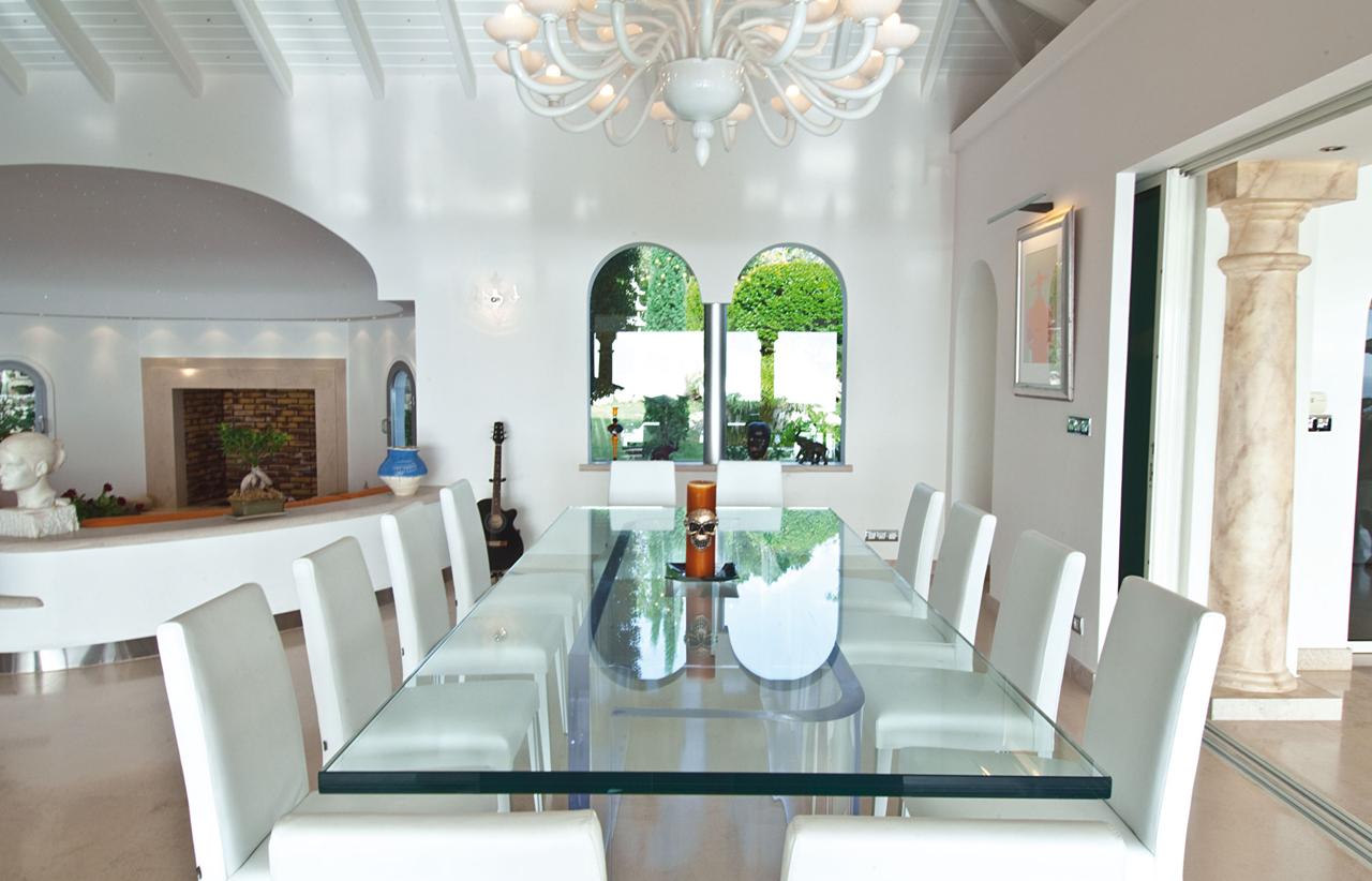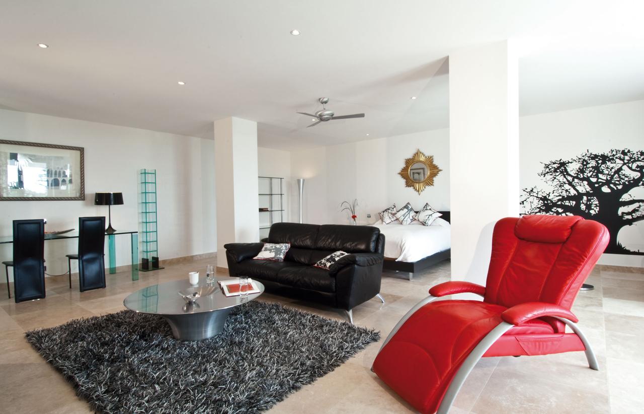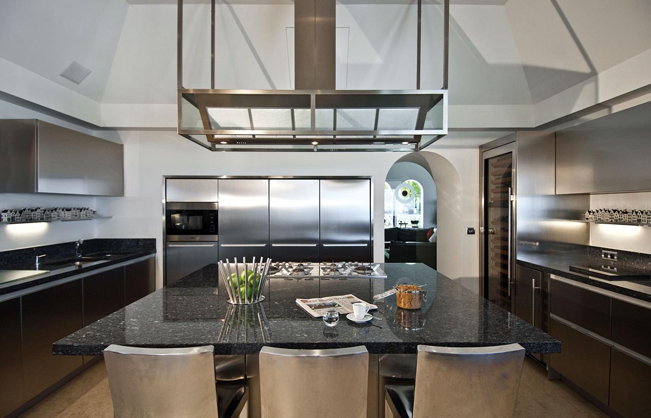 An entrance hall with a tropical reef aquarium leads through to the expansive living areas and pool terraces with open views west to the ocean. The dining area is served by a fully equipped gourmet kitchen. The living room has extensive leather sofas offering comfortable viewing of the plasma TV and home cinema system.