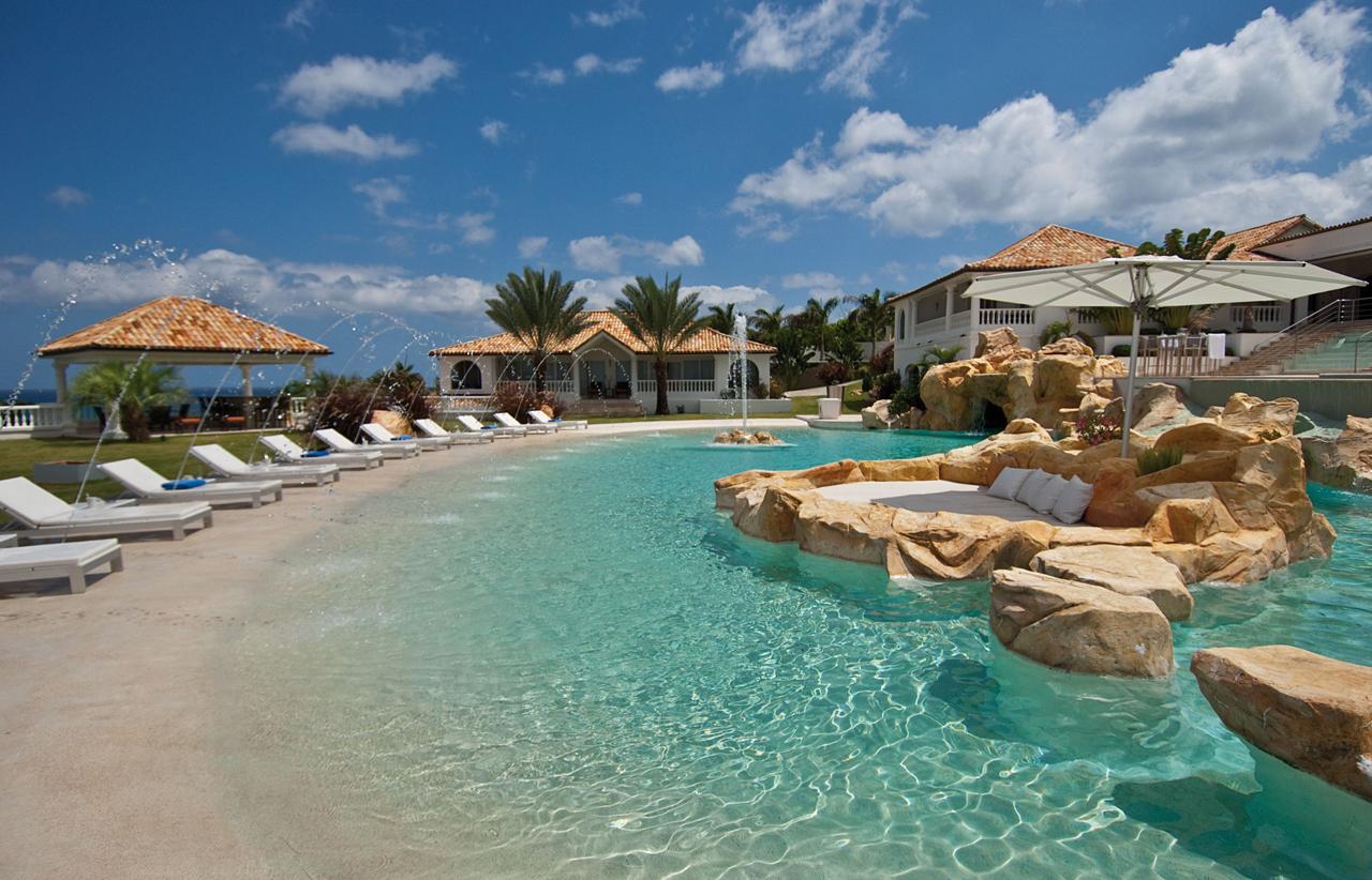 Nestled into the hillside in the exclusive private enclave of Terres Basses and just 20 minutess from an international airport, Sandyline is a newly completed world class, privately owned estate perfectly designed for entertaining. Overlooking the Caribbean Sea amid verdant gardens, this St. Martin vacation rental presents the perfect blend of Provencal architecture with Philippe Starck contemporary interiors. This St. Martin villa provides an exclusive retreat while still being only a 5-minute drive to Plum Bay Beach and all that has to offer.