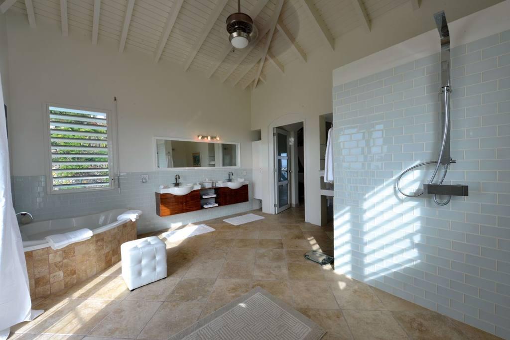 Villa Acqua offers a fully equipped professional kitchen including three ovens, a Viking range, sub-zero refridgerator and wine vault. Get comfortable in the private master suite on the 'penthouse' level. Villa Acqua's master includes a spa-like bathroom with a walk-in double shower. The master opens to a mezzanine sitting area that doubles as a private office. Enjoy views of Saba and Anguilla from the master suite!