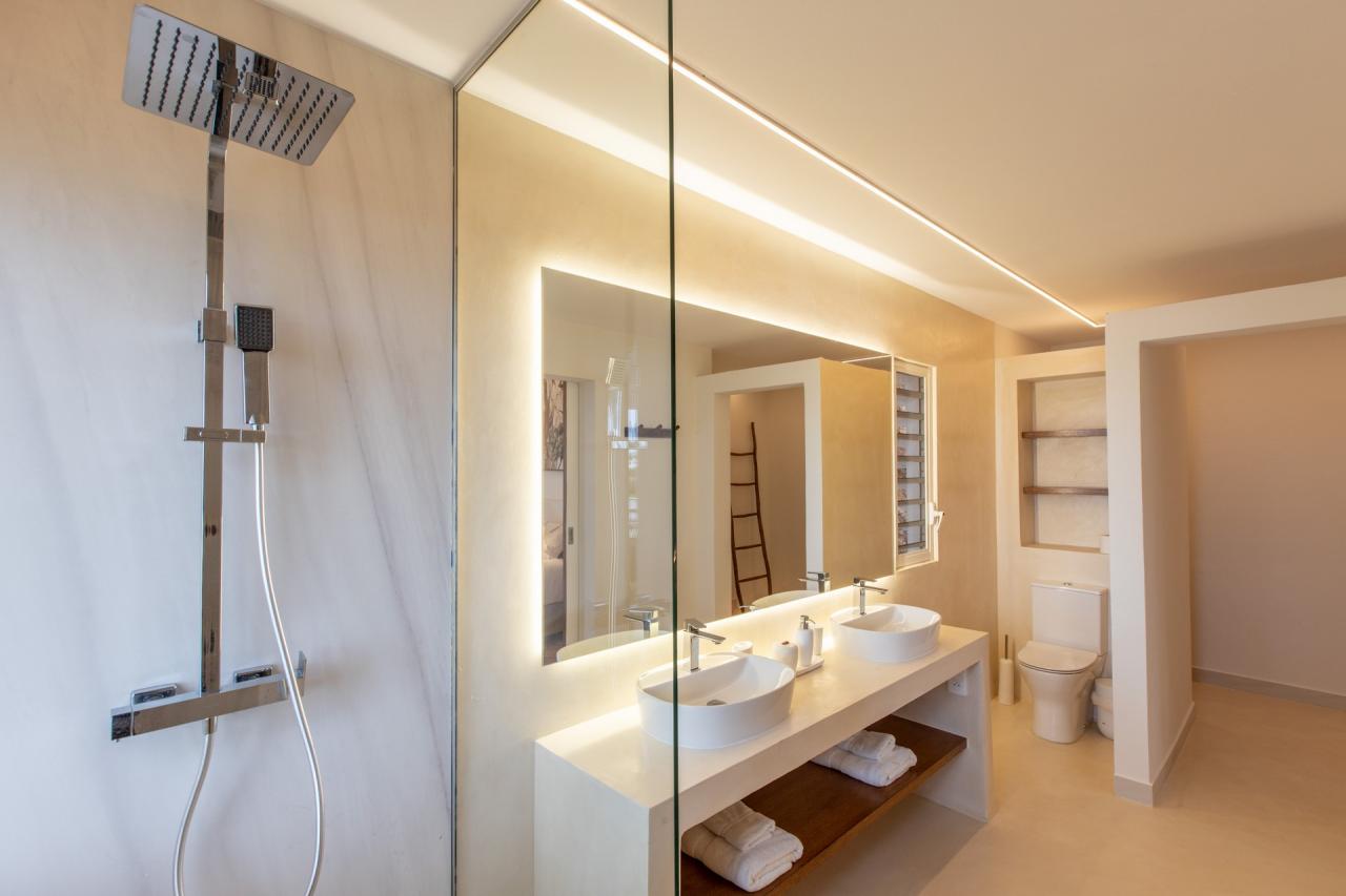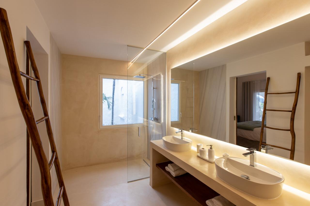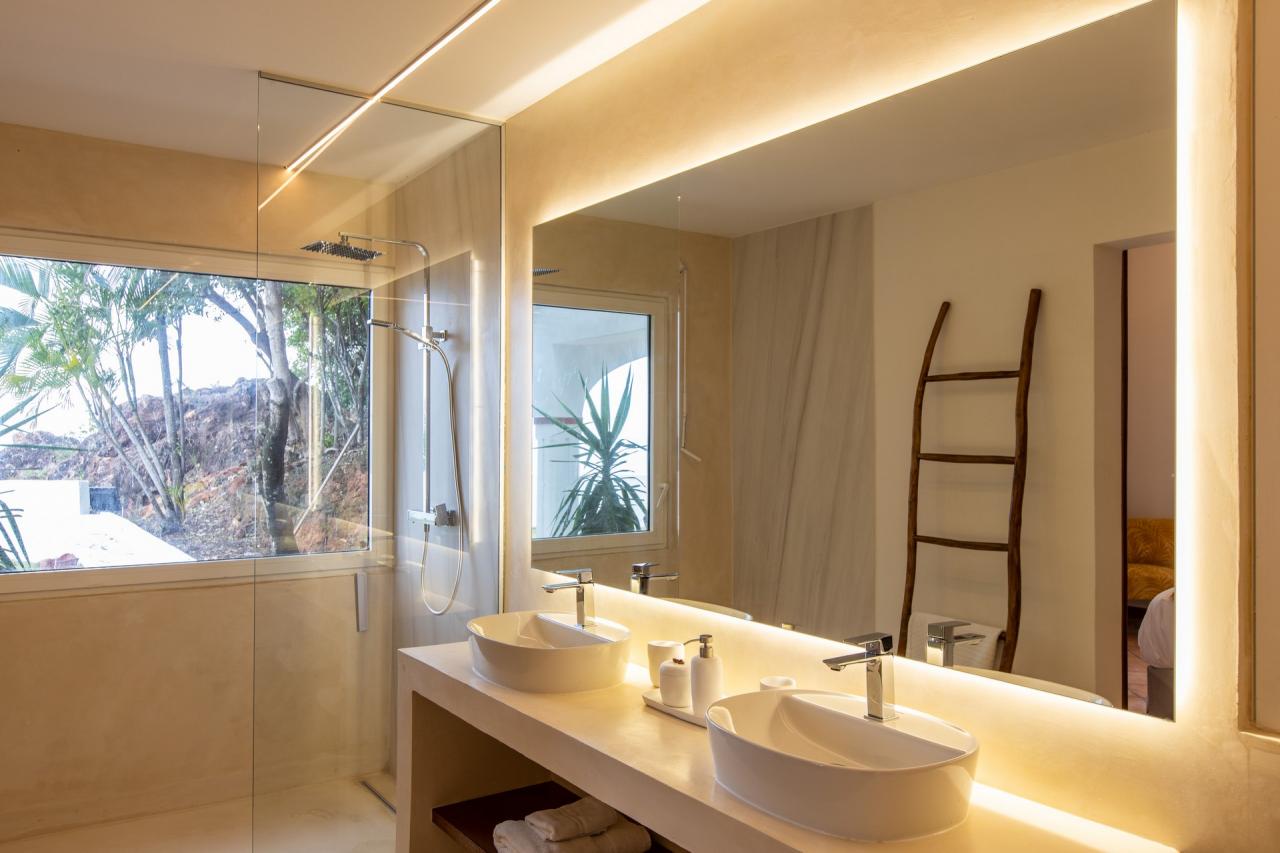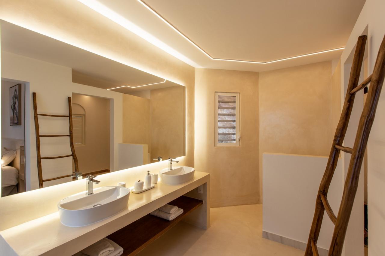 Spread across two levels, Villa Agama features spacious accommodations with five king-sized bedrooms, each equipped with refined en-suite bathrooms and smart TVs for added comfort. The main level houses three bedrooms near the open-concept kitchen and living room, while two additional bedrooms are located on the lower level, offering privacy and serenity. The living area, adorned with contemporary furnishings, exudes warmth and sophistication, perfectly complemented by a fully equipped kitchen that allows guests to prepare gourmet meals while taking in panoramic ocean views.