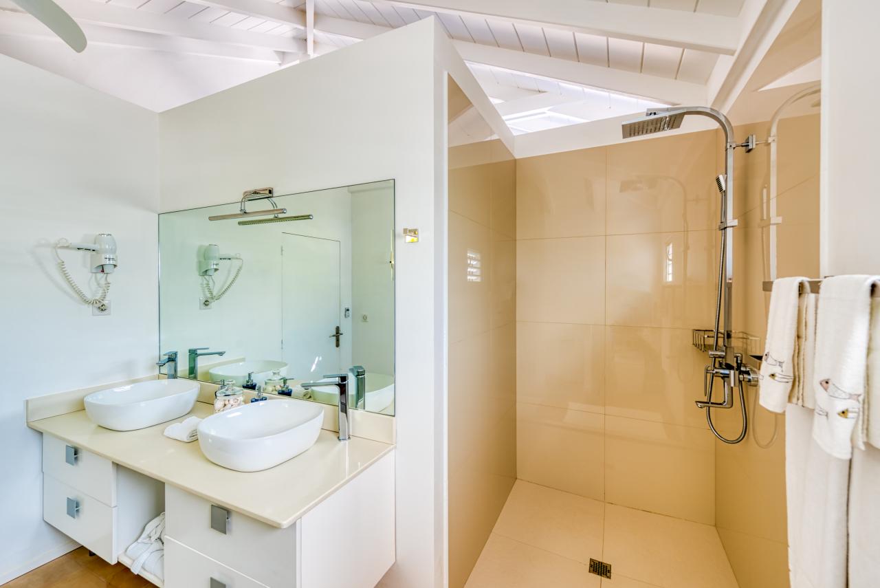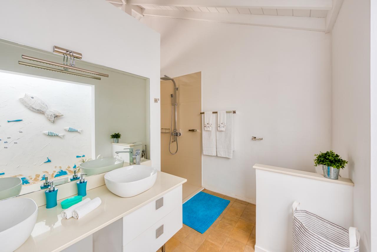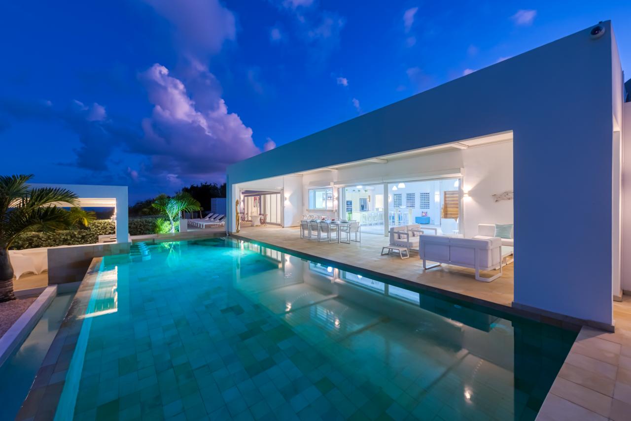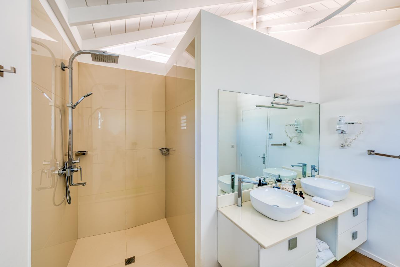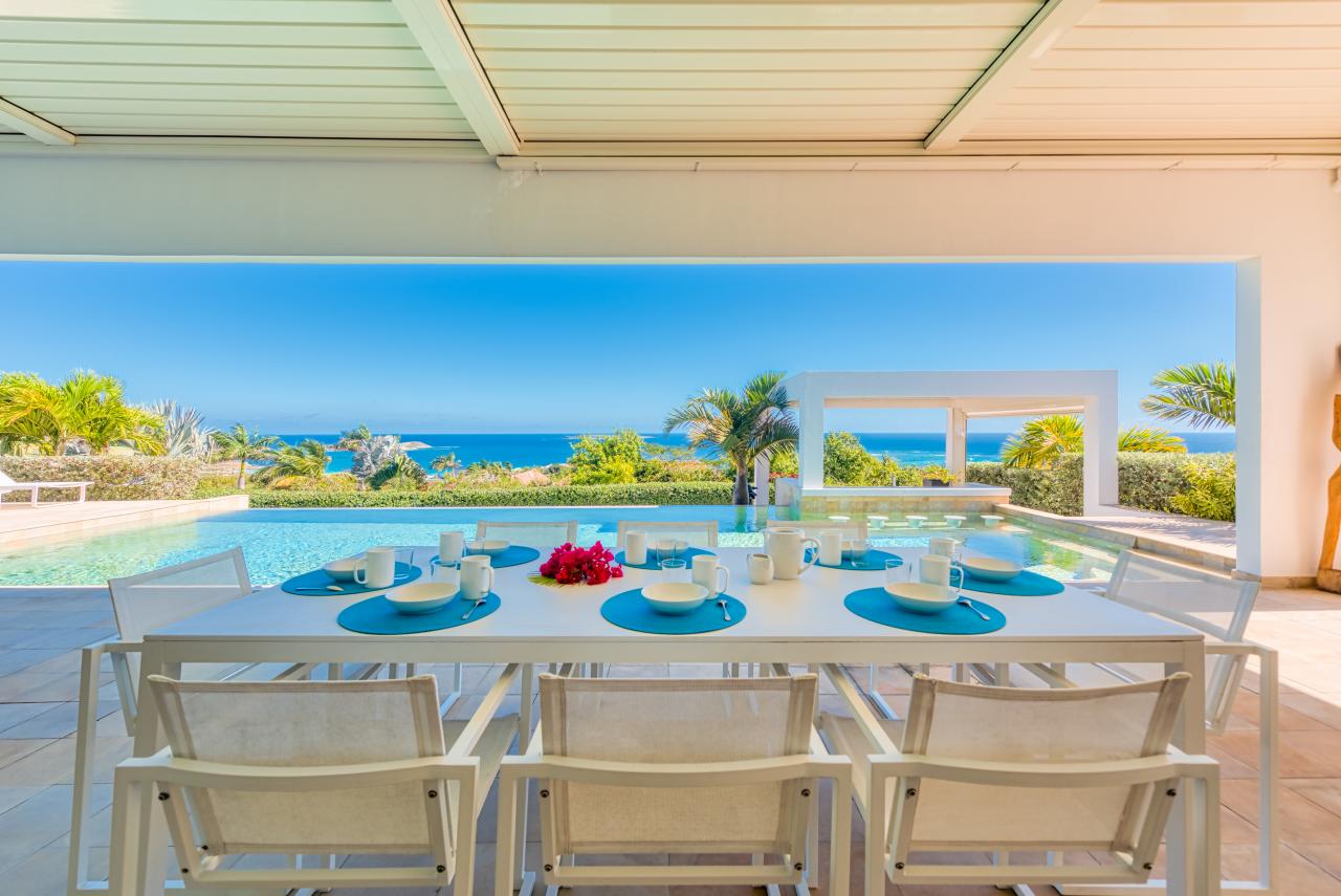 Villa Albacore is a modern home located in the heights of Orient Bay in St. Martin. This gorgeous St. Martin villa has four bedrooms all with their own ensuite bathroom. The villa is equipped with a gourmet kitchen, a living room stocked with various board games, an infinity pool, and wonderful views of both the sea and the surrounding islands.