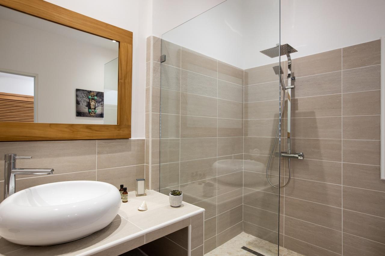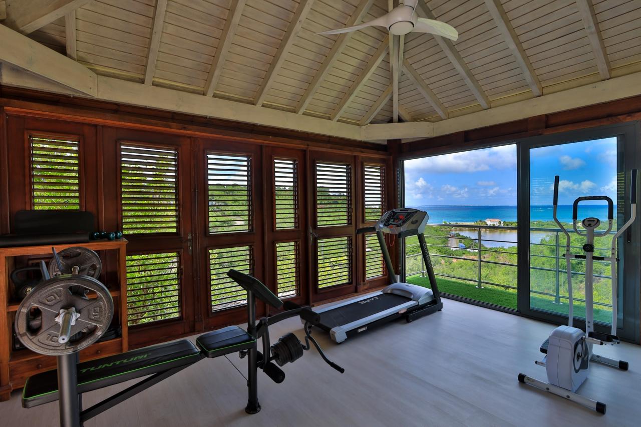 Villa Azur Dream is a gorgeous home located in Terres Basses in St. Martin. This modern St. Martin villa has seven bedrooms, all with their own ensuite bathrooms; five of the bedrooms are on the upper level and two bedrooms on the lower level. The villa is equipped with a heated pool, a gym with an amazing view, two dining rooms, and a BBQ area. This St. Martin villa rental has been fully refurbished in a contemporary and luxurious style. Villa Azur Dream is located only a 1-minute drive to Indigo Bay beach.