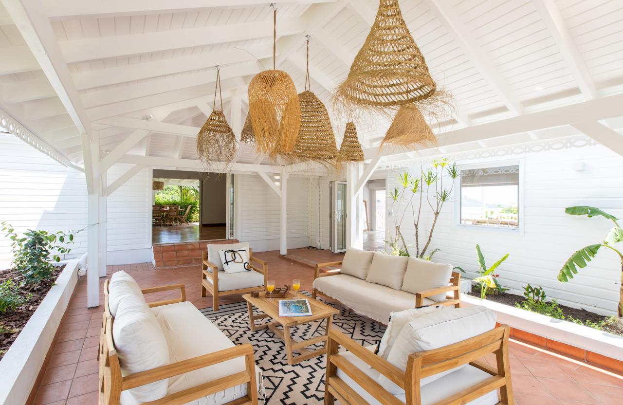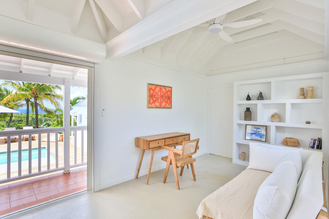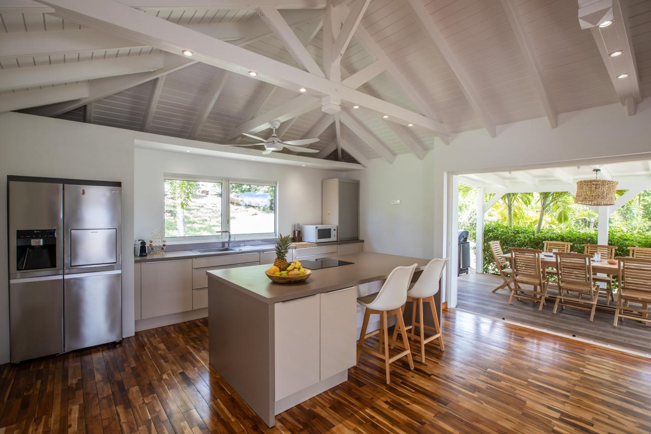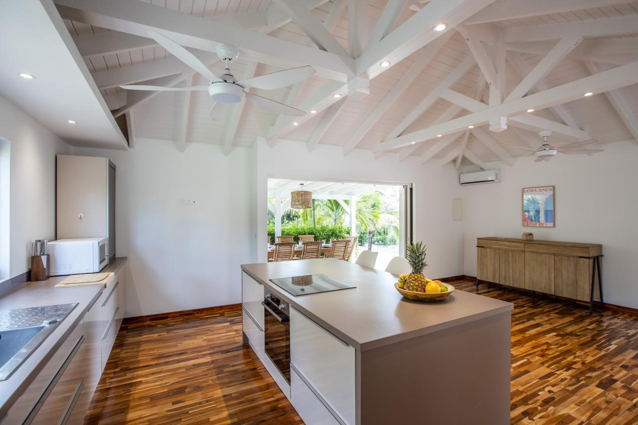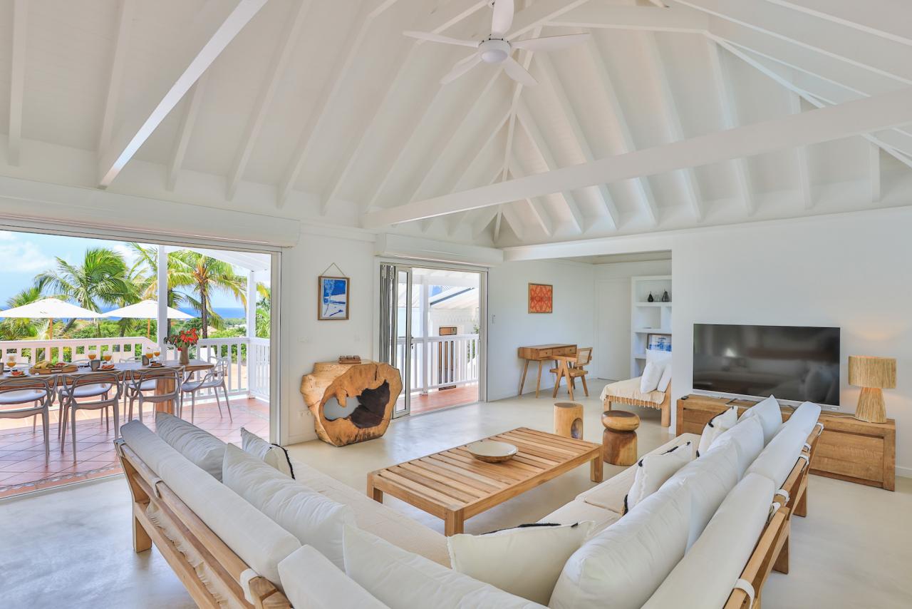 Nestled in the exclusive Terres Basses, Villa Coco Paillette is an idyllic retreat for those desiring the ultimate St. Martin vacation. This recently renovated St. Martin 4 bedroom villa was designed to blend with the natural beauty of the surroundings by incorporating vaulted ceilings, an open floor plan and large glass doors.