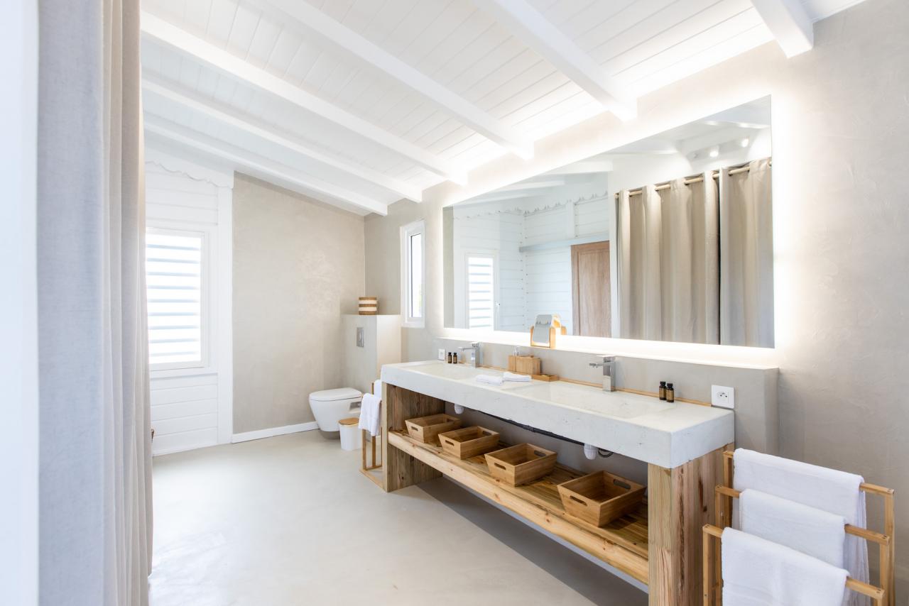 Villa Coco Pailette offers a well-appointed gourmet kitchen featuring top-of-the-line appliances and expansive island. The four bedrooms provide plush accommodations, ensuring comfort and privacy. Two of the bedrooms are connected, making this an ideal family St. Martin villa rental. The outdoor area provides a spacious terrace surrounding the gorgeous pool and lush gardens featuring swaying palms and fragrant flowers.