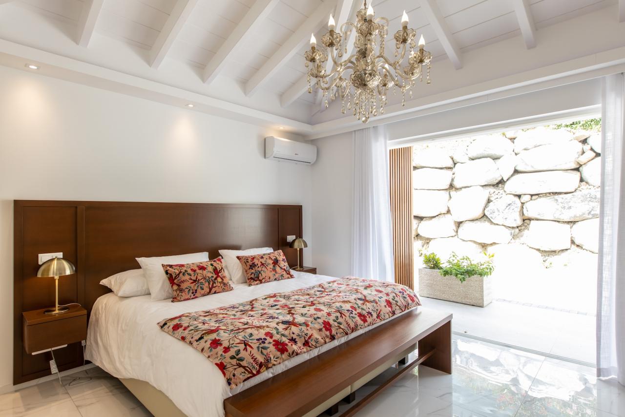 This St Martin vacation rental boasts four elegant bedrooms, each one designed to provide the utmost comfort and privacy. Two of the four elegantly appointed bedrooms feature ensuite bathrooms, providing a private sanctuary for relaxation and convenience. The ensuite bathrooms are all luxuriously equipped to ensure a serene and indulgent experience. The third and fourth bedrooms share a well-appointed bathroom which makes it ideal for families or groups. The fourth bedroom also comes with a delightful bonus, an outdoor shower, allowing guests to enjoy the surrounding natural beauty.