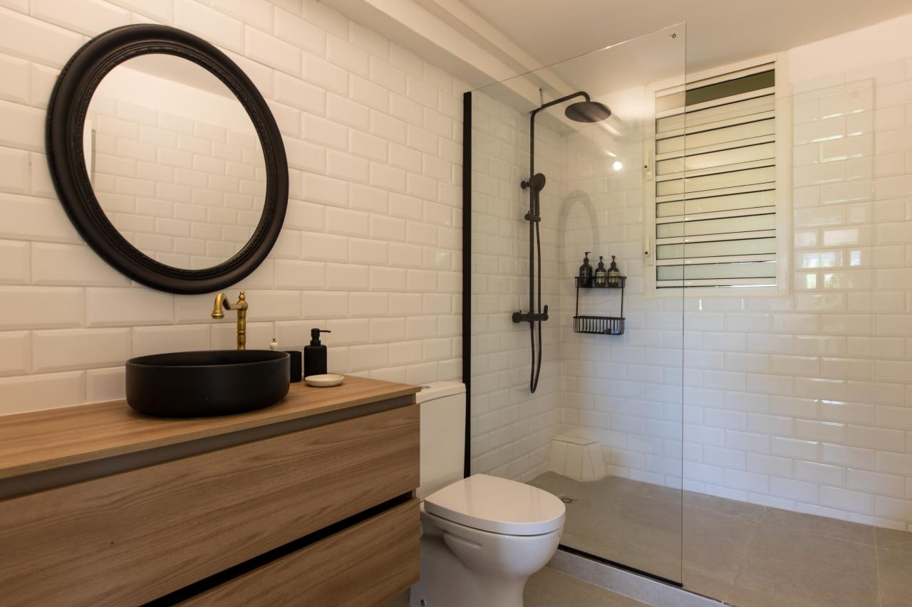 The main level of Villa Les Oliviers holds the primary bedroom with an ensuite bathroom. There are two additional bedrooms with ensuite bathrooms that overlook the pool. One of the bedrooms is accessible from inside the house, while the other is accessed from the terrace, allowing for a seamless blend of indoor and outdoor living. Guests can find the fourth bedroom on the lower level of Villa Les Oliviers. This room serves as a true sanctuary, with its private access through a small path next to the house, a private terrace, and a pond with koi fish.
