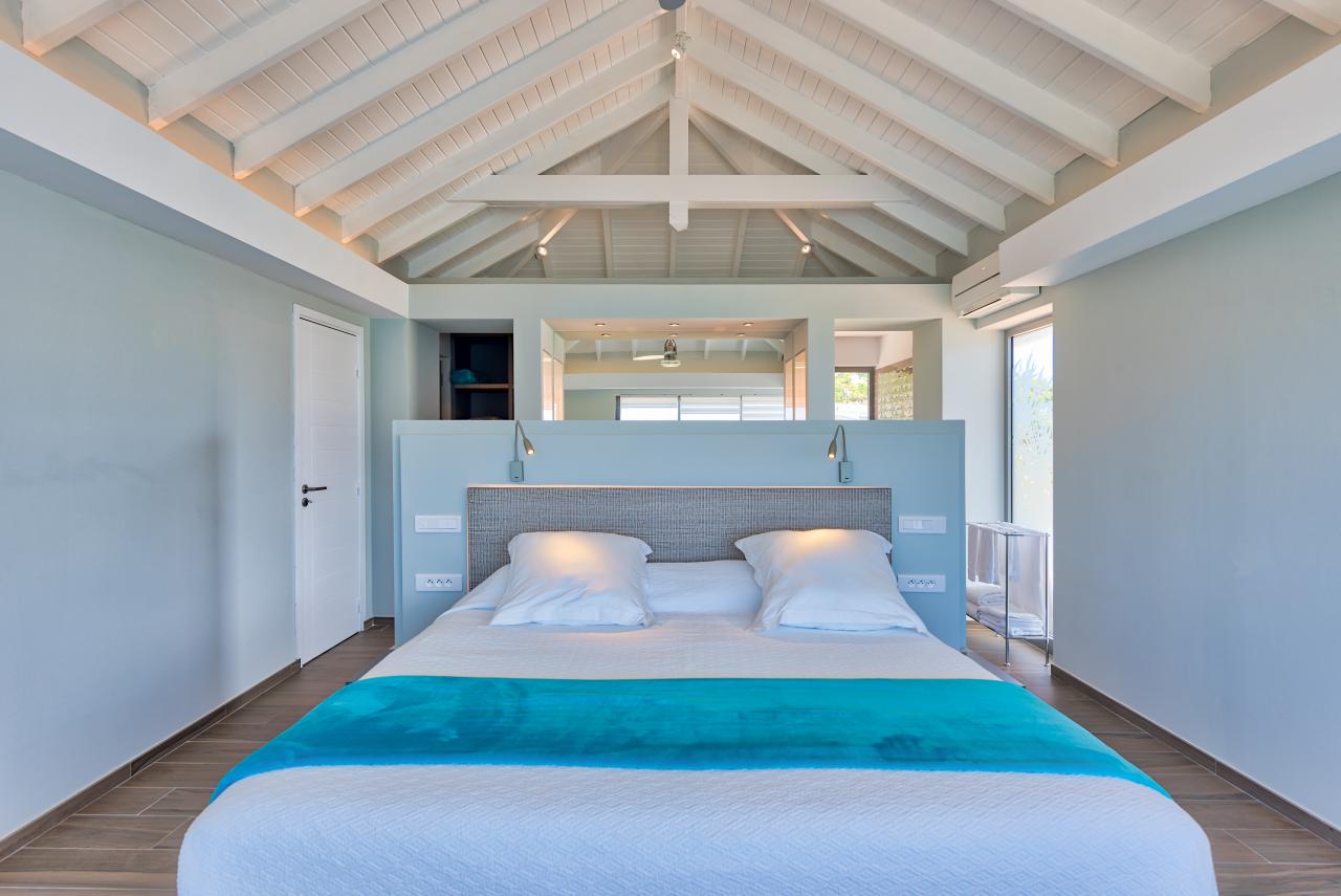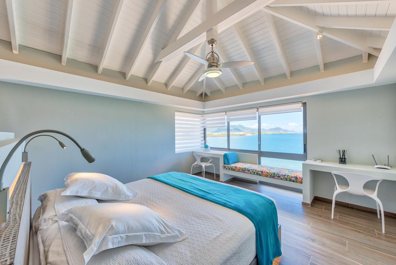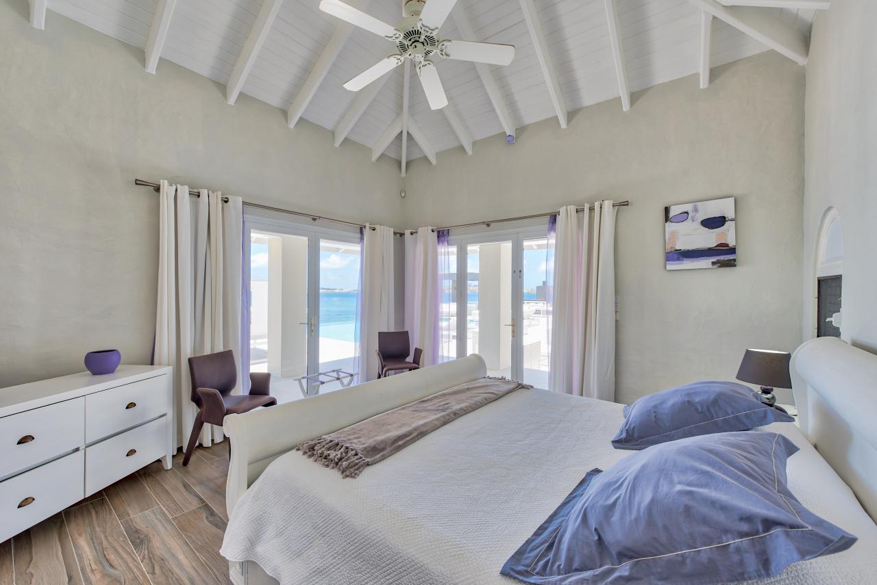 Bedroom 5: This bedroom has a king-sized bed, a TV, a fan, air conditioning, a safe, and an ensuite bathroom. This room has a lagoon/ocean view.