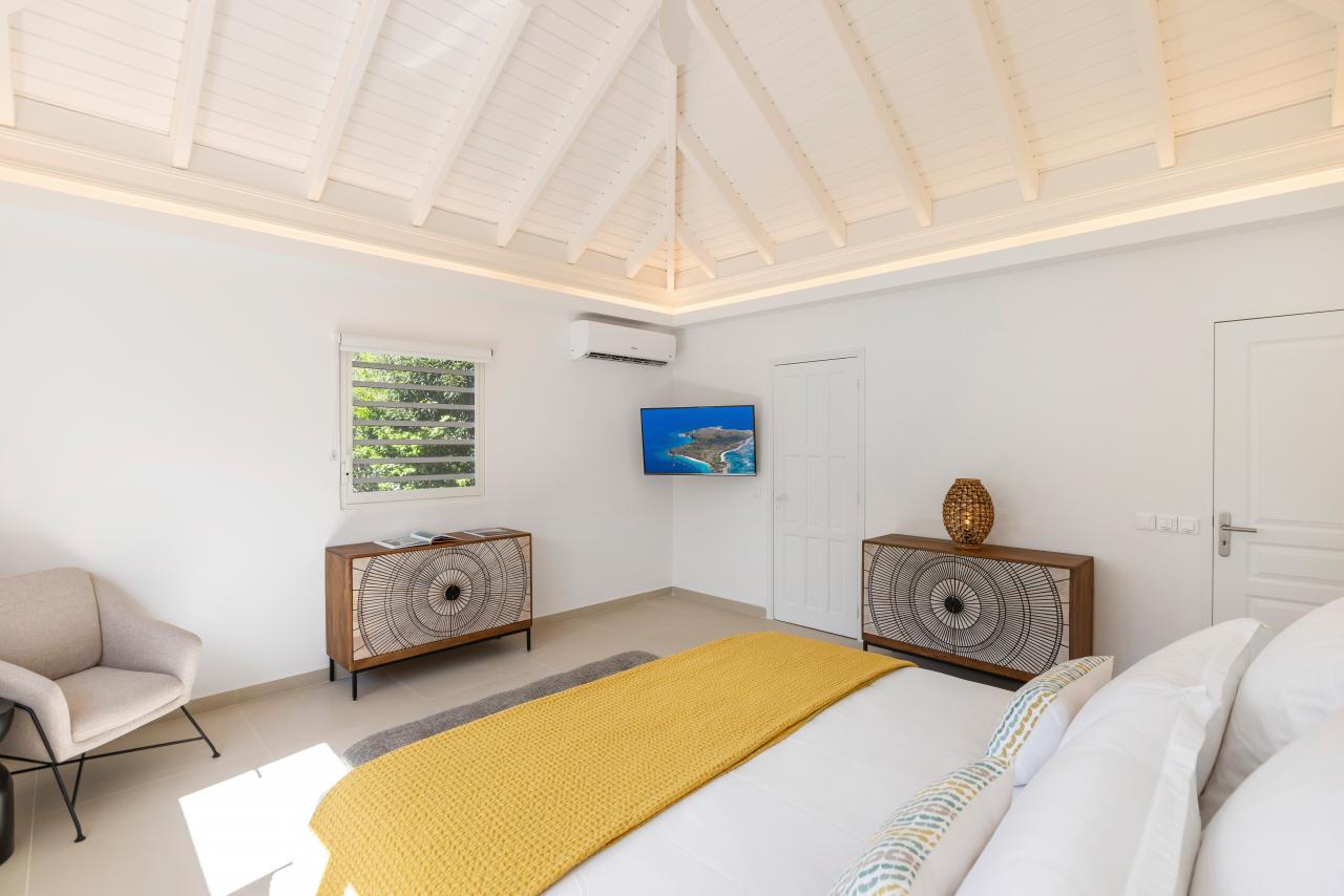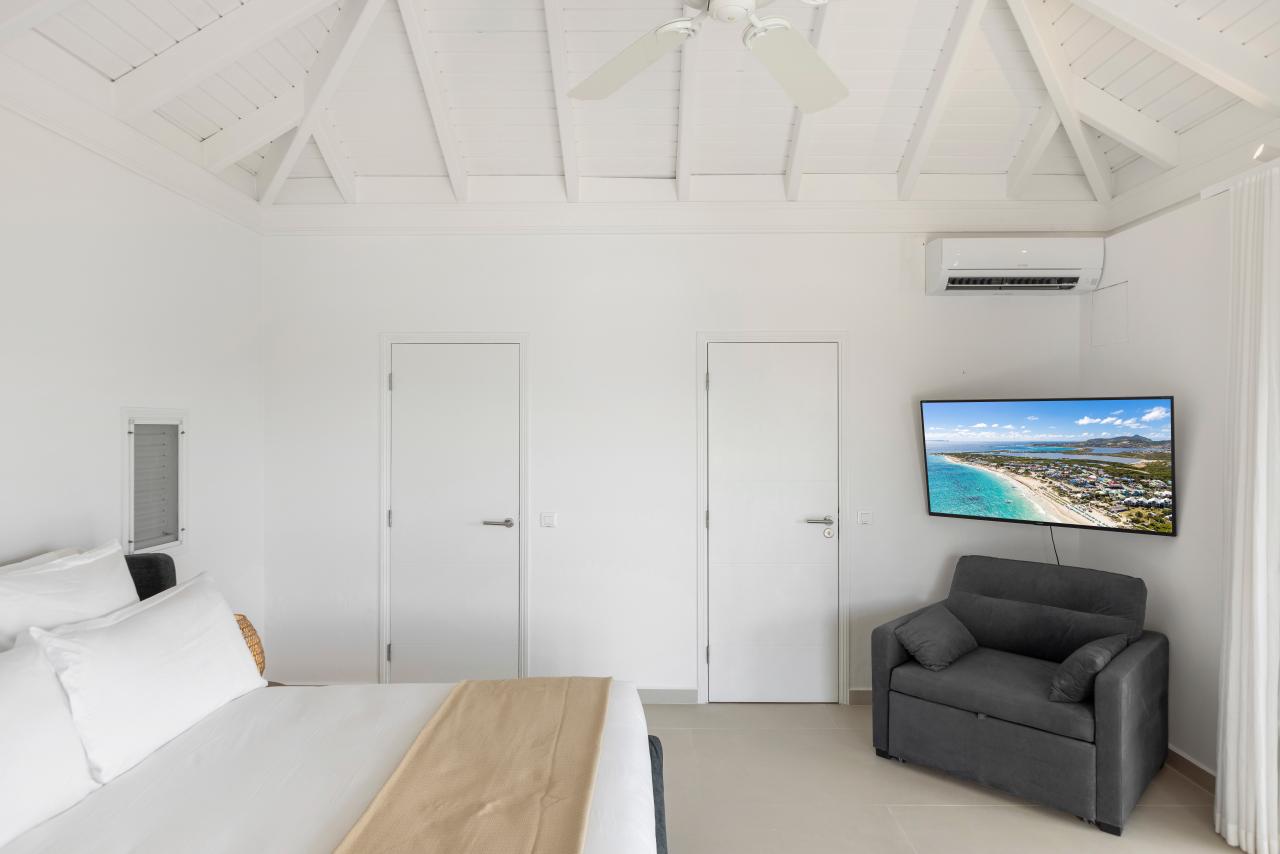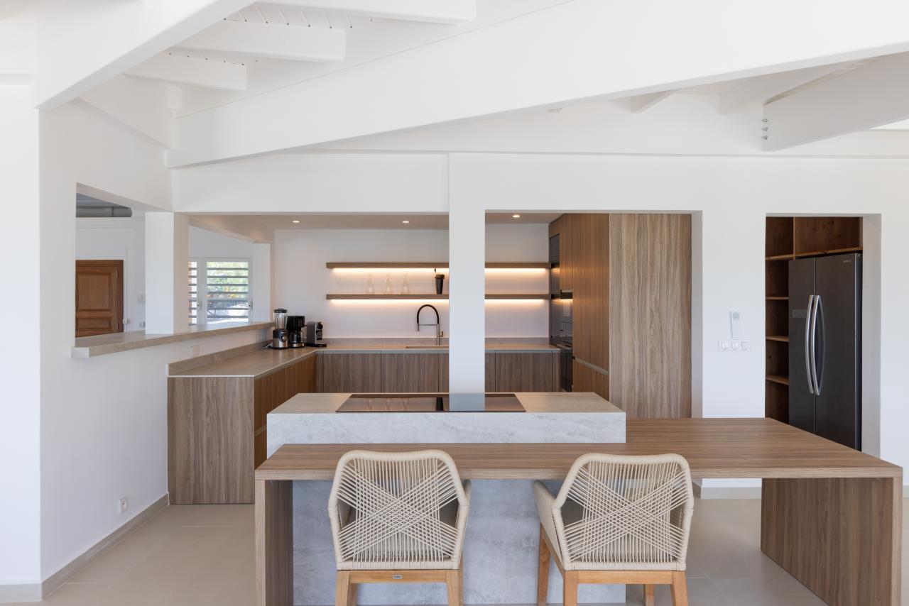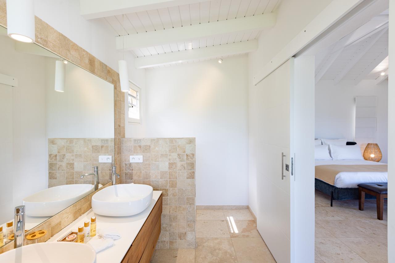 Villa OSun features exquisite Tommy Bahama furnishings, thoughtfully modernized with contemporary décor which Bleu de Perse, a renowned home design specialist, curated. This St Martin villa rental is perched on a scenic hillside, and it boasts breathtaking views from each living area and bedroom. Villa Fields of Ambrosia accommodates up to six guests, it offers two king suites and a twin bedroom, each with a luxurious ensuite bathroom.