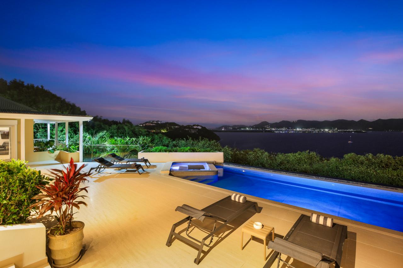 Villa OSun is a stunning St Martin rental nestled in the exclusive area, of Terres Basses. This three-bedroom luxury villa offers unparalleled lagoon and mountain views from its stunning cliffside location.