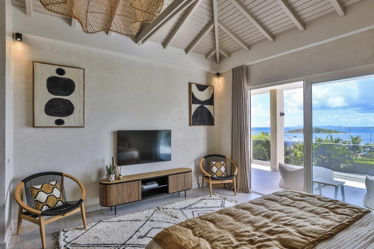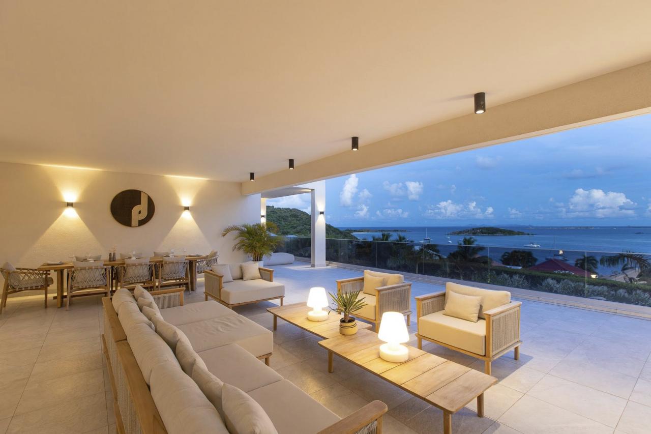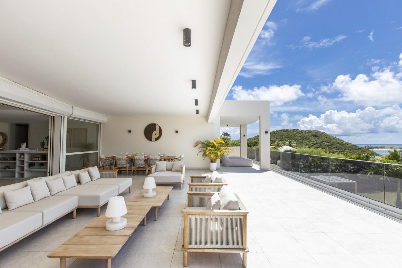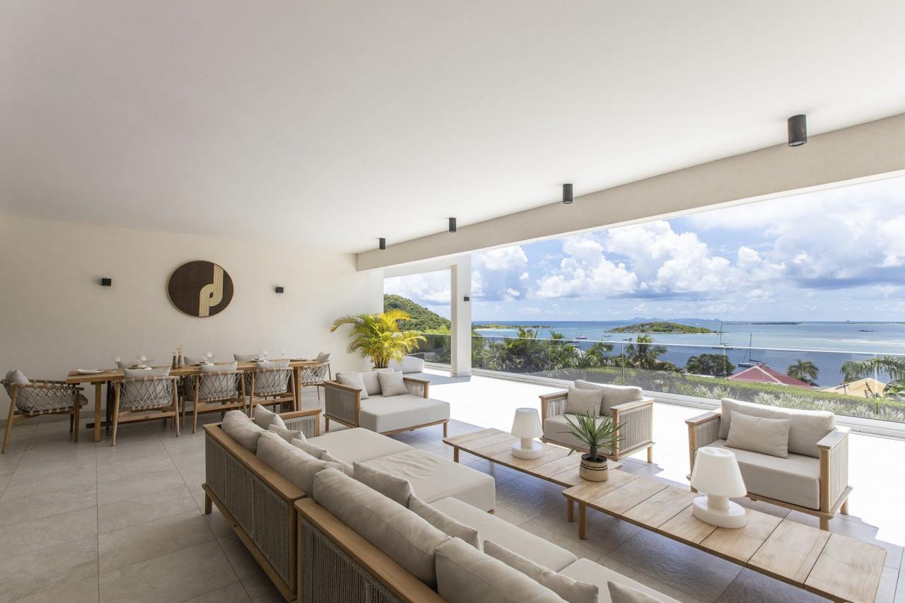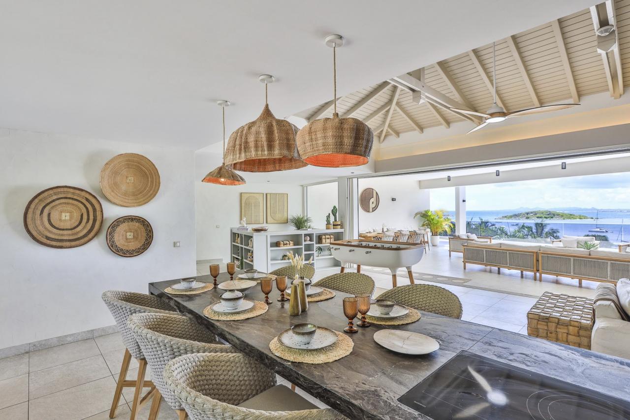 Villa Vogue Art is a stunning villa in St. Martin that has been completely redecorated and designed for guests' ultimate comfort in the exclusive Cul de Sac area. With its elegance and breathtaking views, it is an architectural gem that offers panoramic views of the gorgeous Pinel Island.