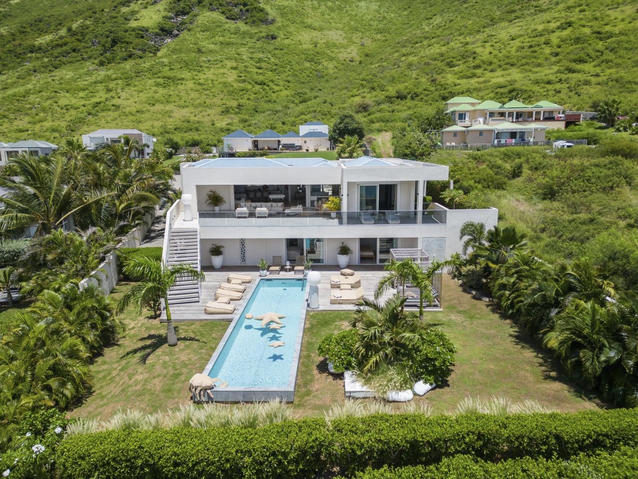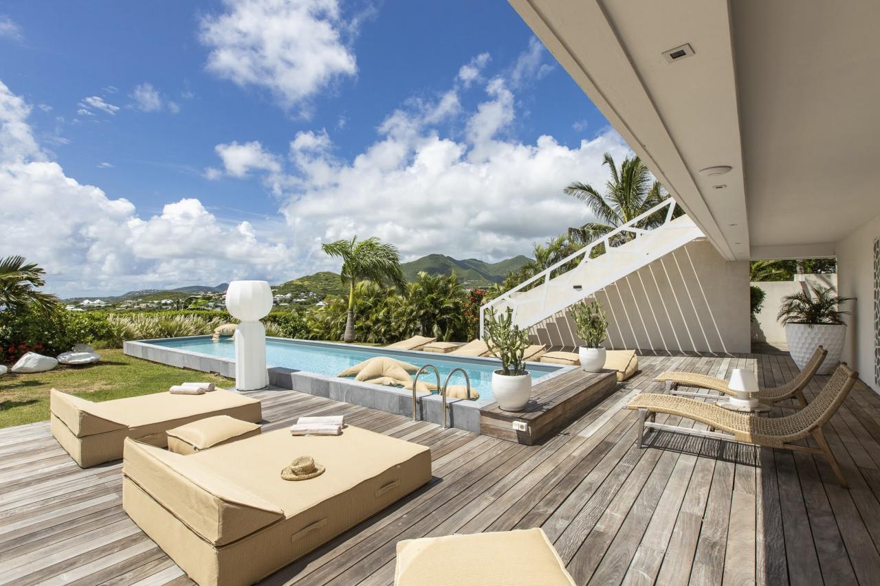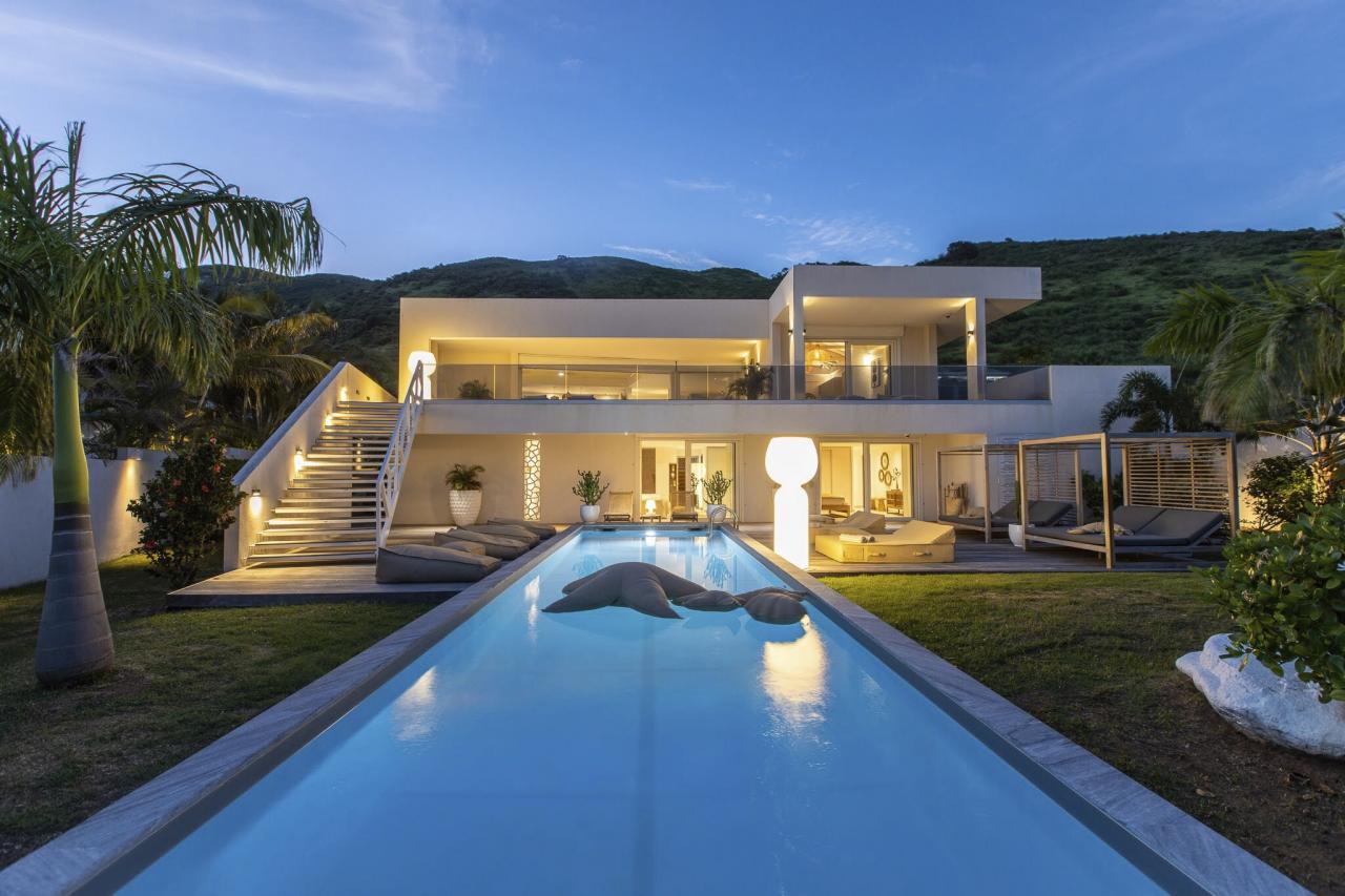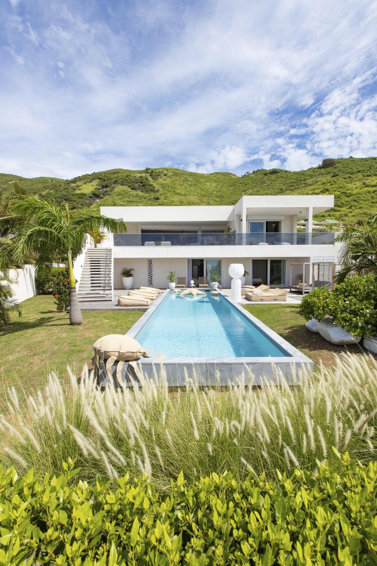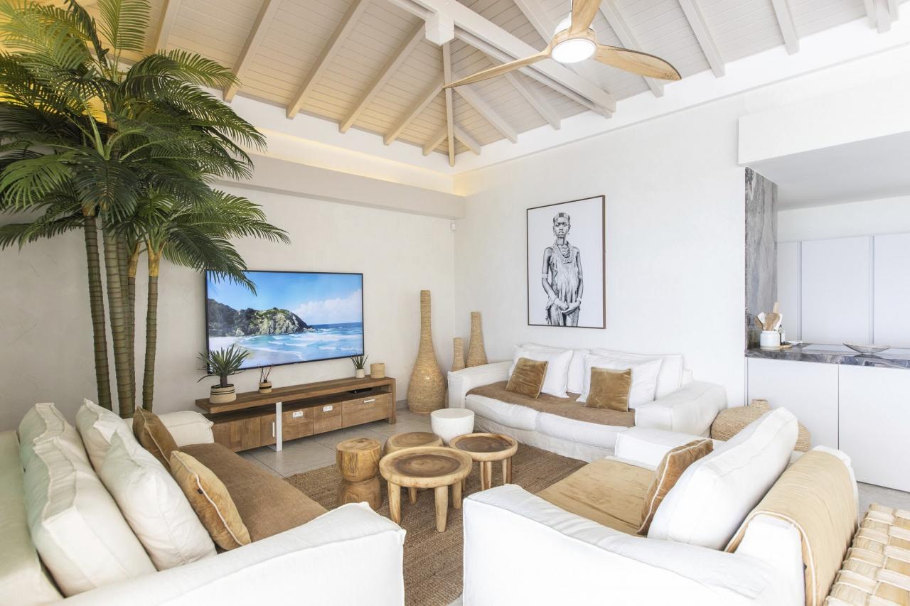 Villa Vogue Art is a stunning villa in St. Martin that has been completely redecorated and designed for guests' ultimate comfort in the exclusive Cul de Sac area. With its elegance and breathtaking views, it is an architectural gem that offers panoramic views of the gorgeous Pinel Island.
