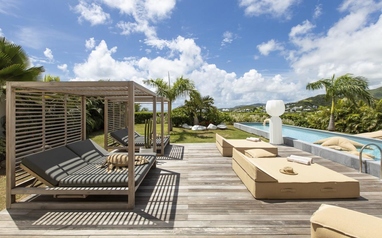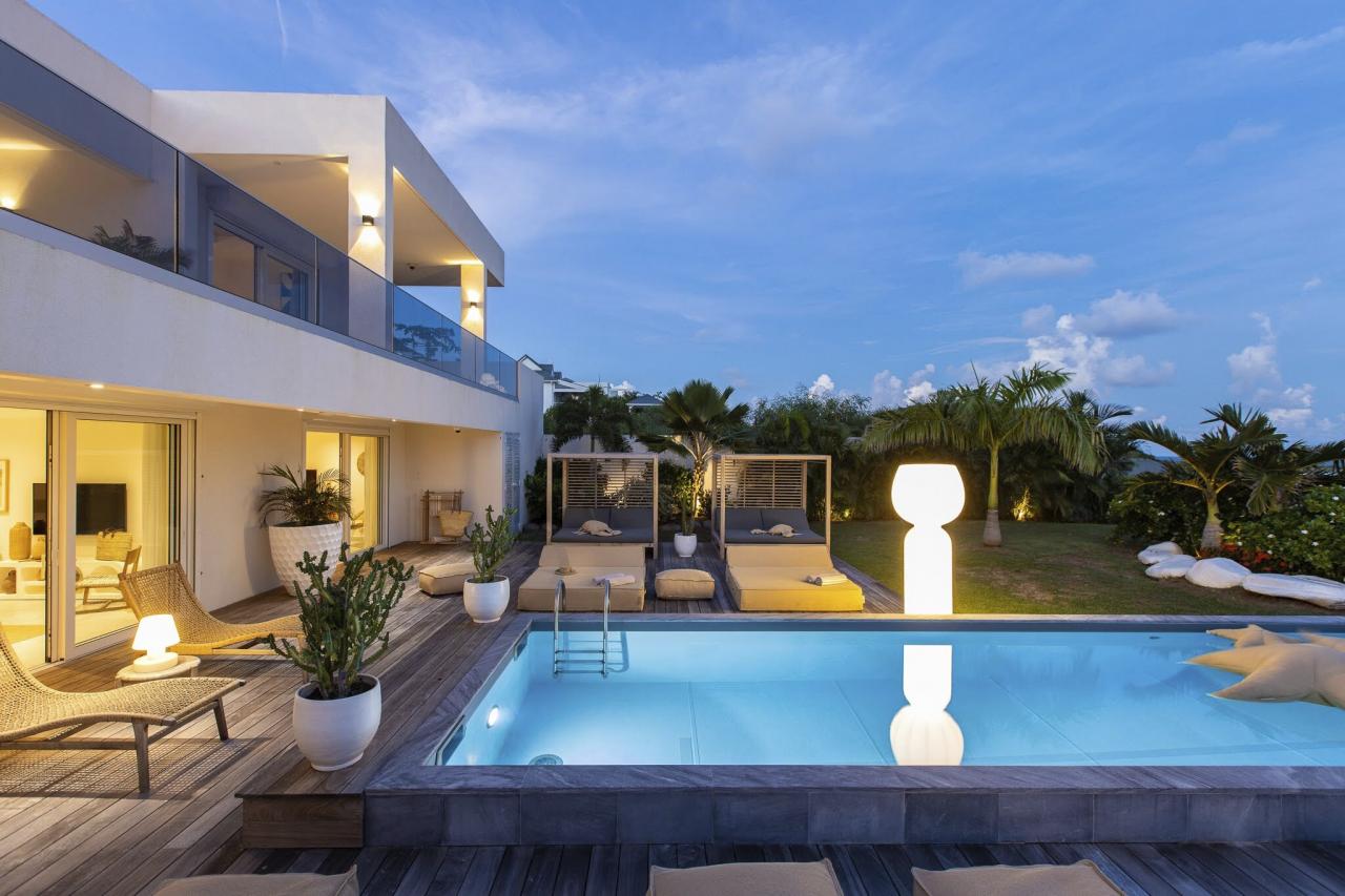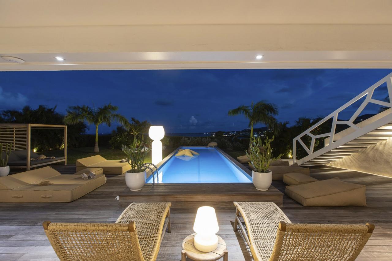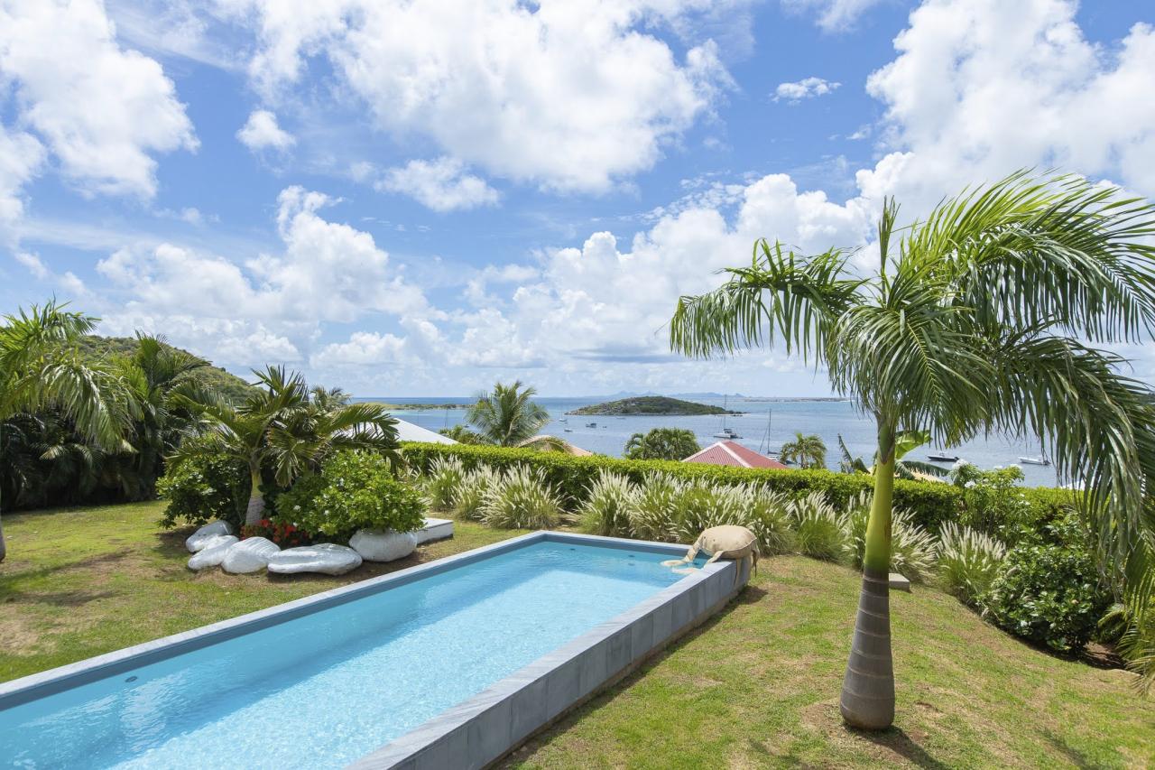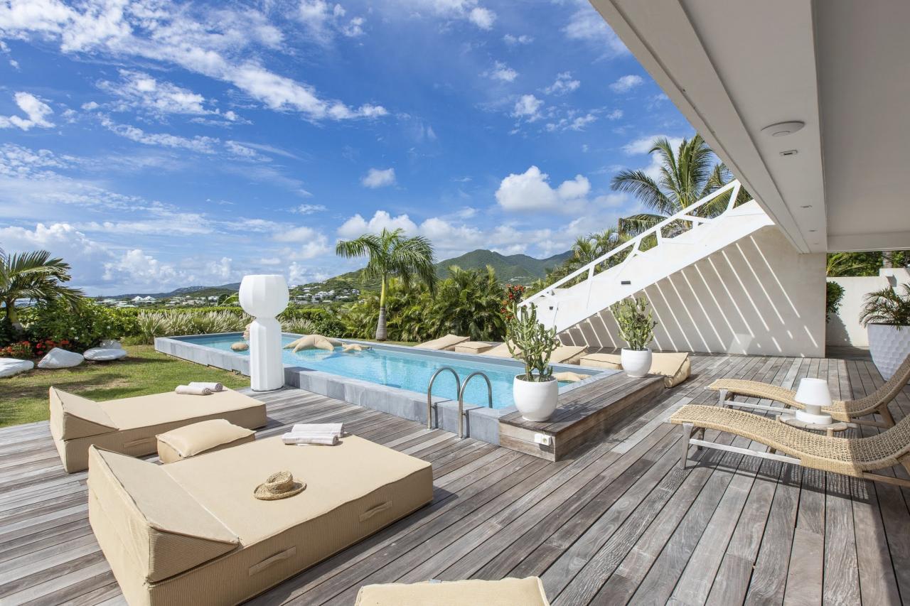 Villa Vogue Art is a stunning villa in St. Martin that has been completely redecorated and designed for guests' ultimate comfort in the exclusive Cul de Sac area. With its elegance and breathtaking views, it is an architectural gem that offers panoramic views of the gorgeous Pinel Island.
