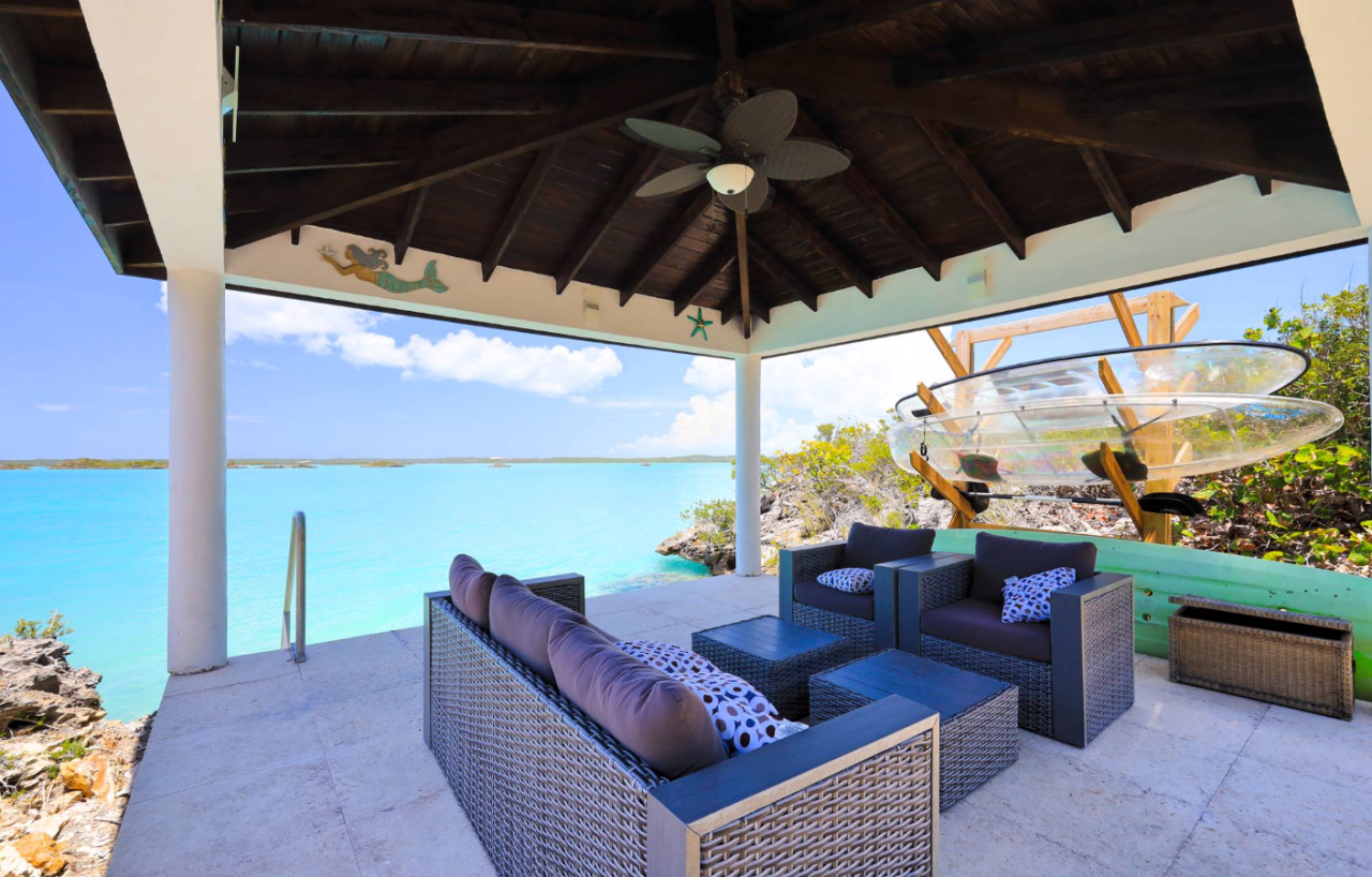 Outdoor spaces at Aventine Villa are designed to maximize enjoyment of the stunning surroundings, with a large upper deck, a spacious pool deck, and a screened-in porch for shaded relaxation. Guests can start the day with coffee on the upper deck, enjoy lunch by the pool, and unwind with a cocktail at sunset. The Turks and Caicos rental location also offers easy access to nearby attractions, including the secluded Taylor Bay beach, which is perfect for families, as well as the amenities of downtown, just a short drive away.