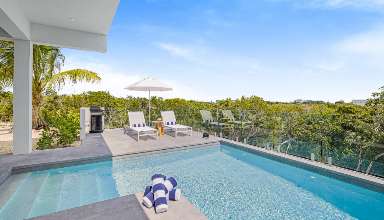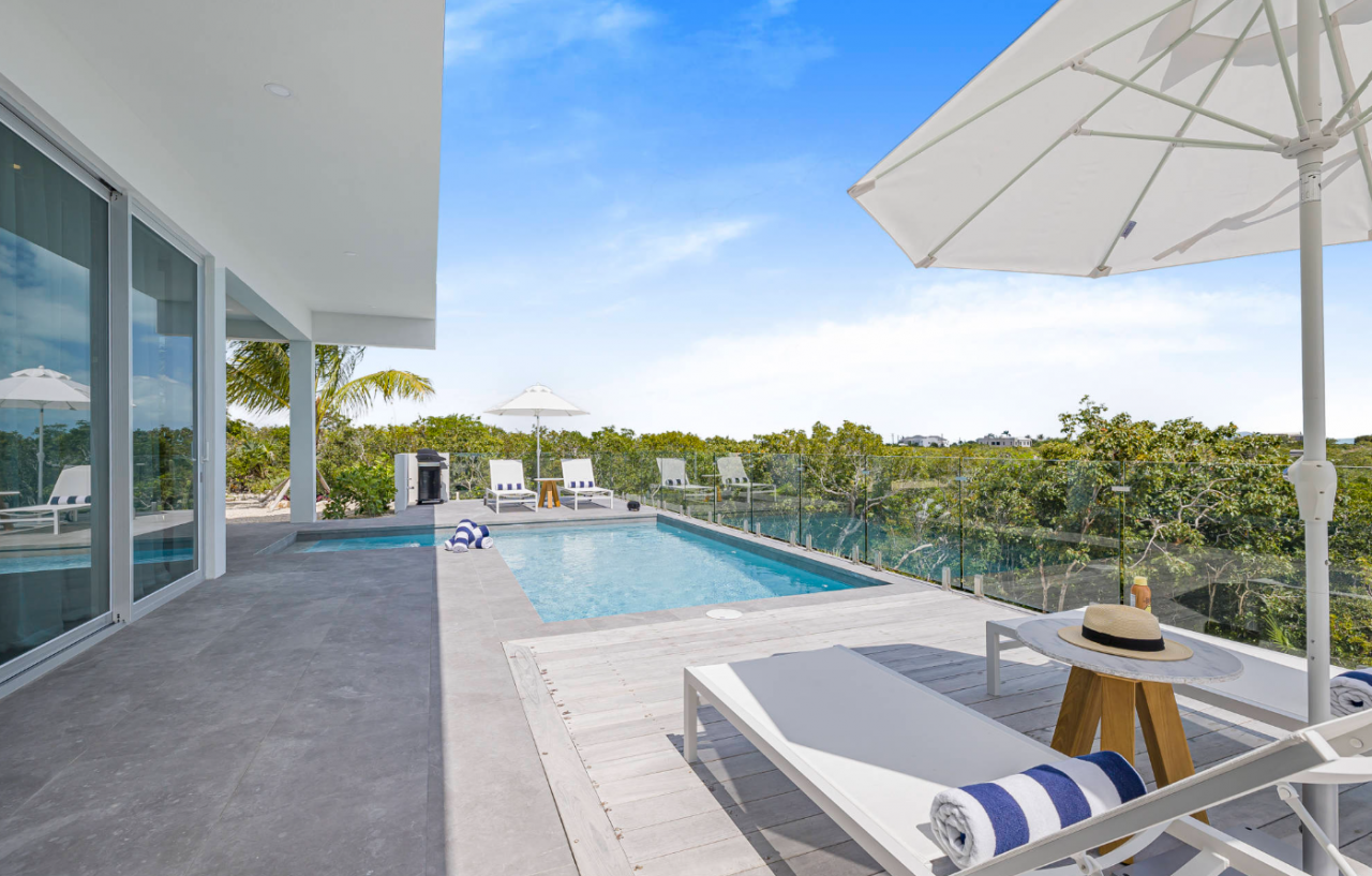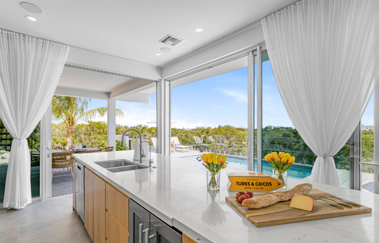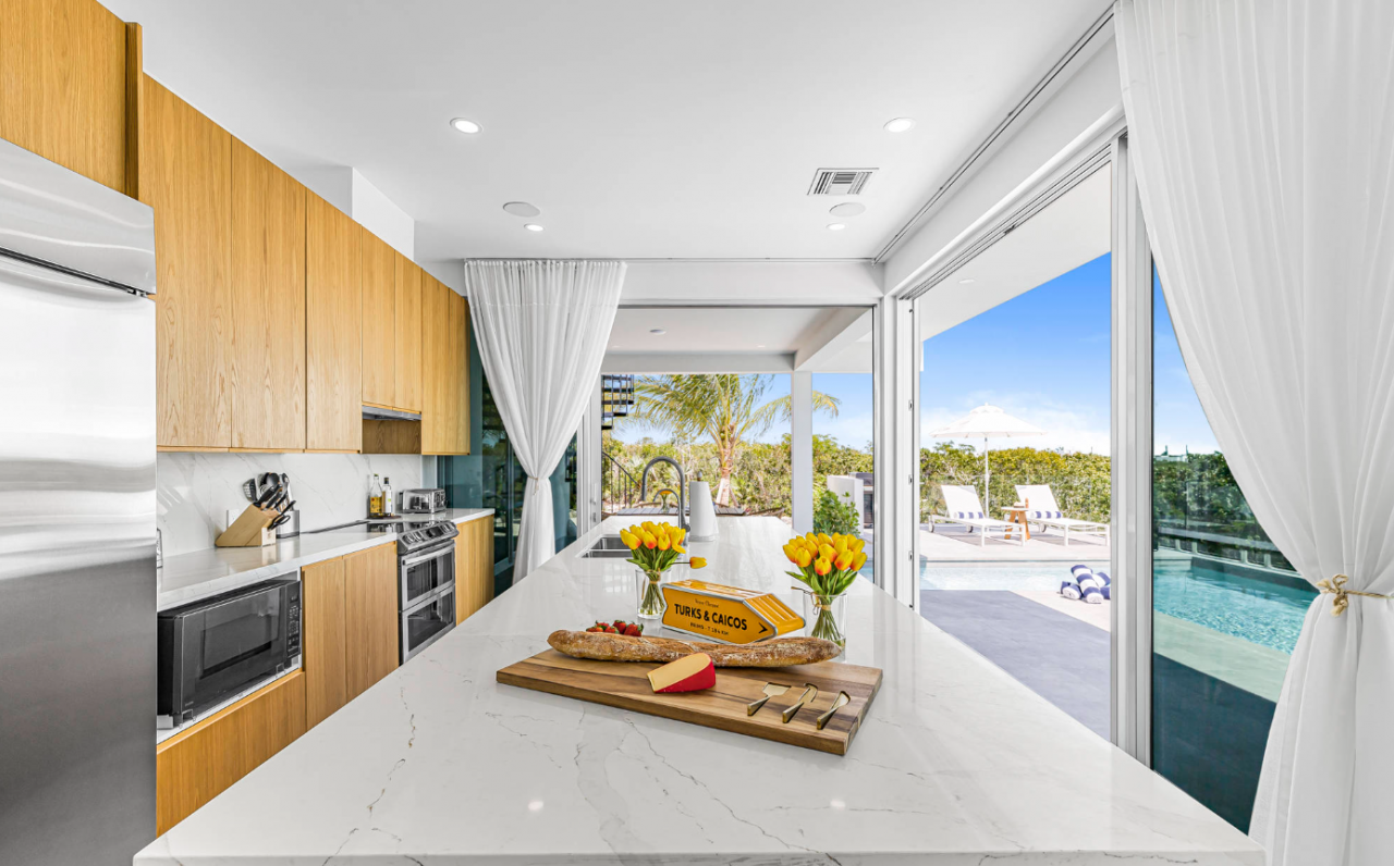 Caicos Breeze is a three-bedroom, three-bath modern designed Turks and Caicos villa located in the quiet Karaya Blue community. This newly built villa embraces indoor-outdoor living with its "glass house" design, making for a memomarable island vacation. The home is designed to make meals and beverage prep a breeze with a well appointed kitchen and BBQ area. The living areas and patio are equipped with a Sonos system to set the musical ambiance for the day. Each bedroom offers a king bed with high quality linens, washrooms that offer double sinks, as well as indoor/outdoor showers. The beach is a short walk down the beach path and Caicos Breeze provides beach chairs, umbrella, towels, bluetooth speaker, and cooler for a relaxing Turks and Caicos vacation.