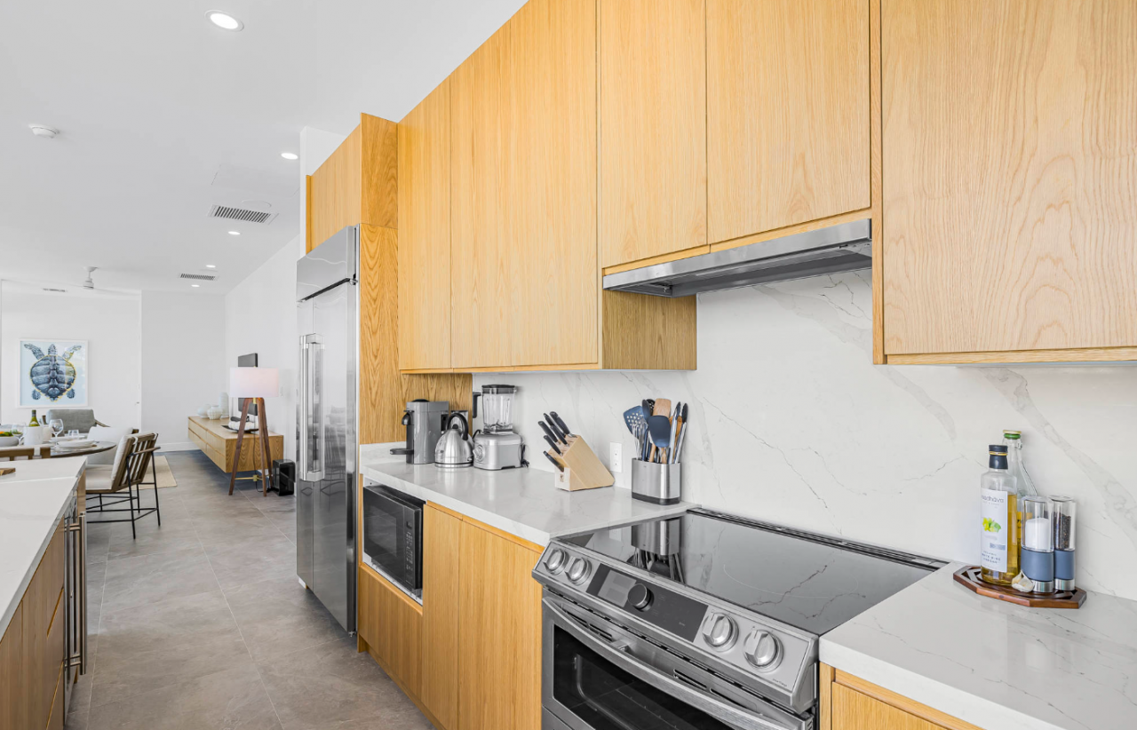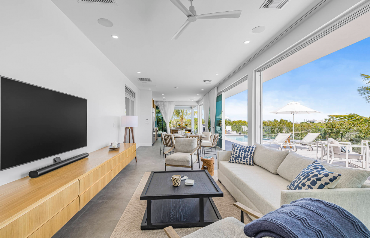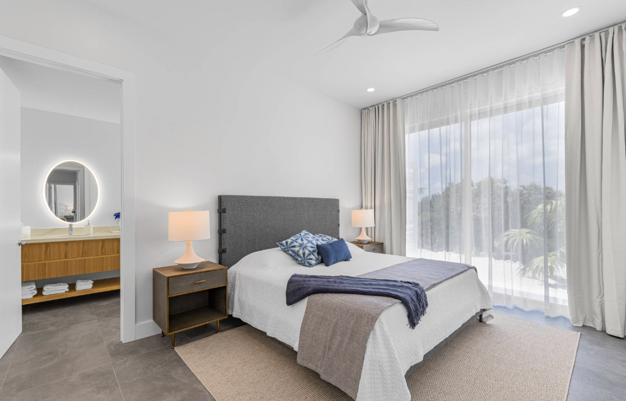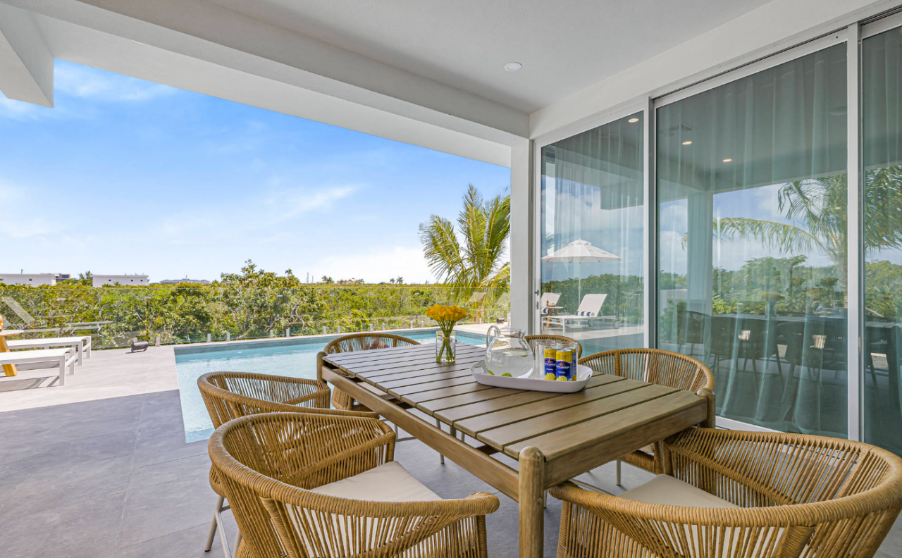 Caicos Breeze is a three-bedroom, three-bath modern designed Turks and Caicos villa located in the quiet Karaya Blue community. This newly built villa embraces indoor-outdoor living with its "glass house" design, making for a memomarable island vacation. The home is designed to make meals and beverage prep a breeze with a well appointed kitchen and BBQ area. The living areas and patio are equipped with a Sonos system to set the musical ambiance for the day. Each bedroom offers a king bed with high quality linens, washrooms that offer double sinks, as well as indoor/outdoor showers. The beach is a short walk down the beach path and Caicos Breeze provides beach chairs, umbrella, towels, bluetooth speaker, and cooler for a relaxing Turks and Caicos vacation.
