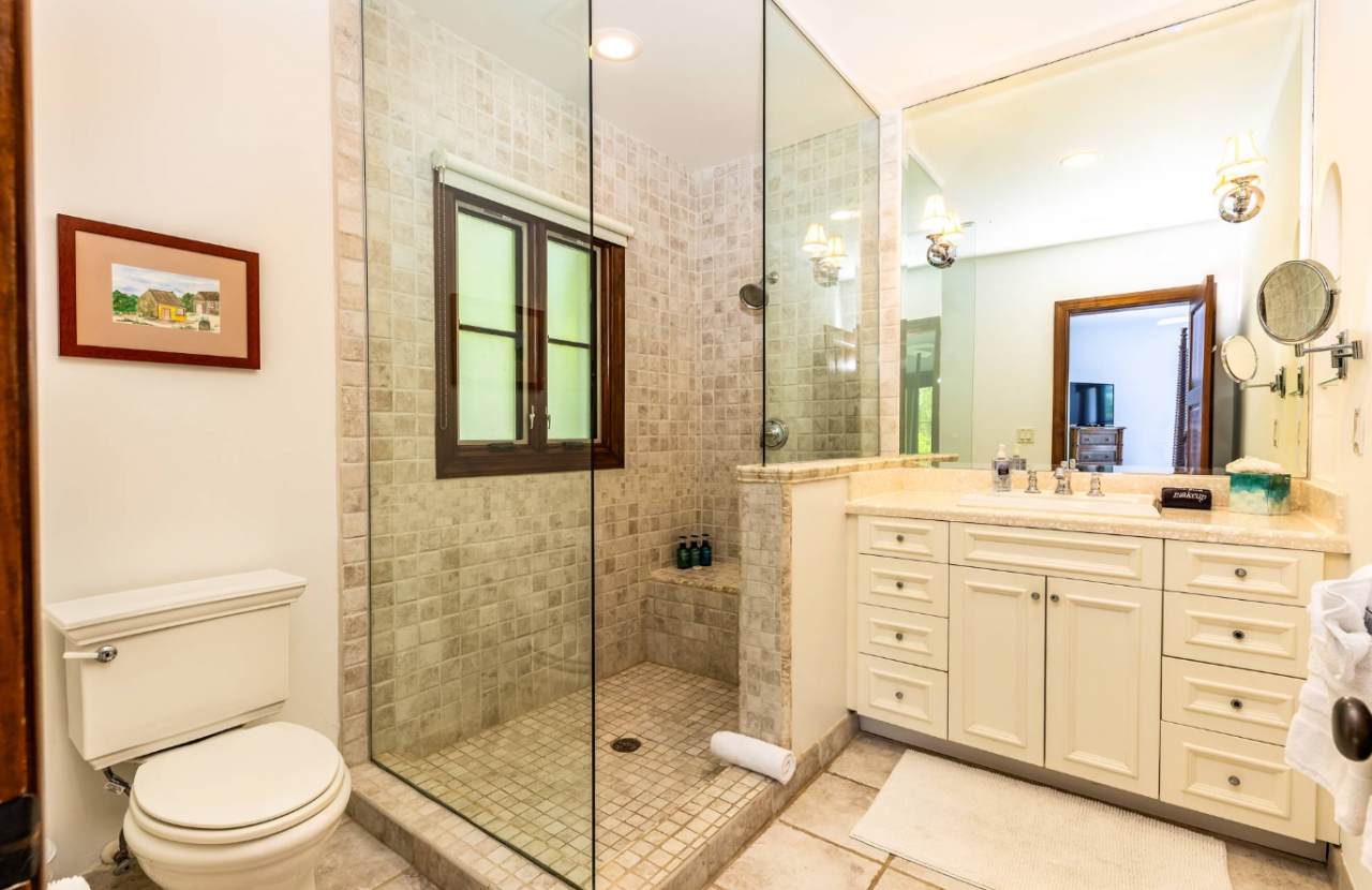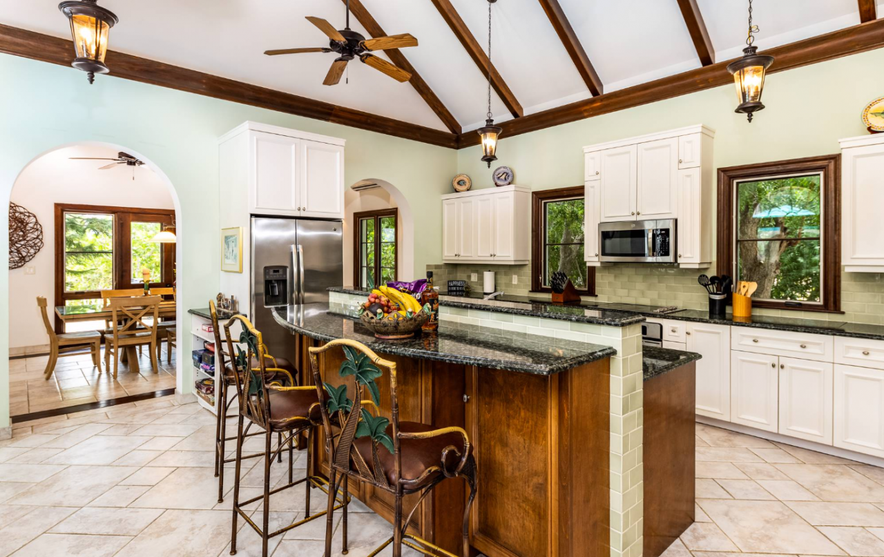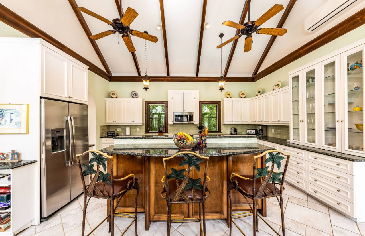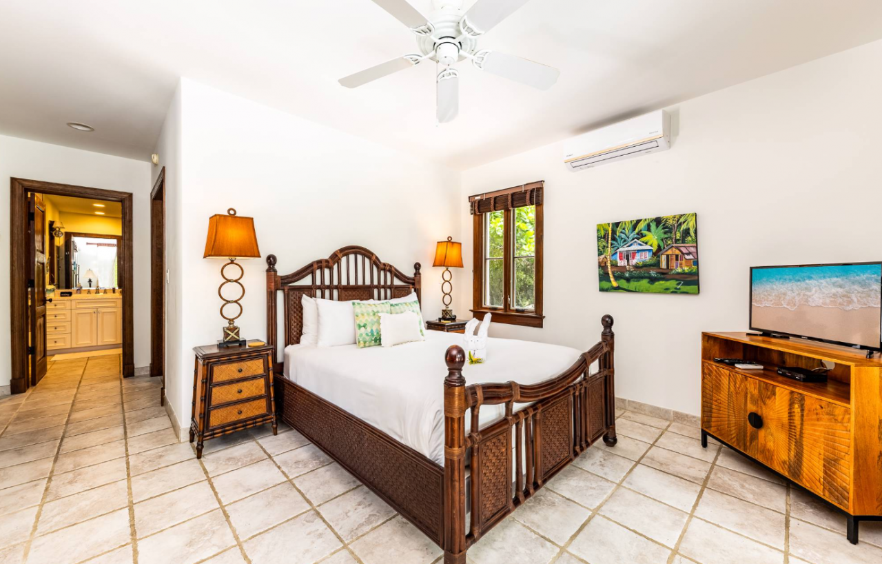 Casa Barana's west wing hosts the five large ensuite bedrooms. The master suite includes a bar sink, frige, and patio access with outstanding ocean view. Directly adjacent to the master is a large bedroom with two twin beds (can convert to king) - perfect for children. Guests will enjoy the serenity and peace of the large upper deck overlooking the entire property. Three additional bedroms are located on the main level and each have their own private entrance. The east wing hosts an ensuite bedroom, fully equipped gourmet kitchen, luxurious dining room, large great room and laundry area.