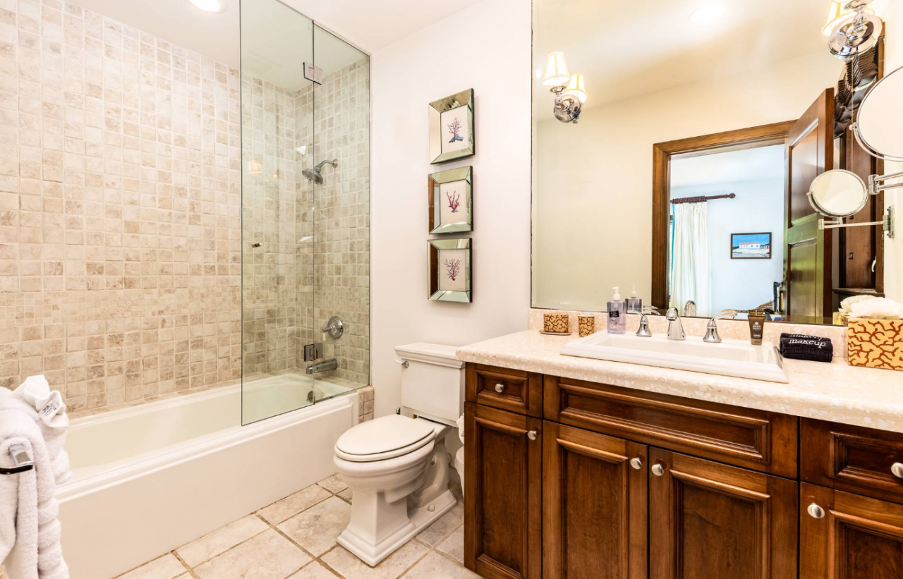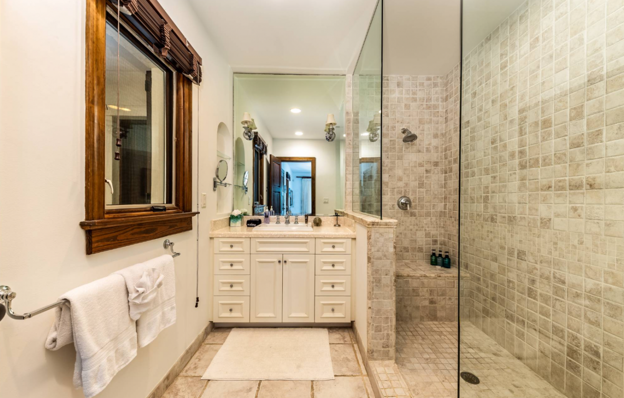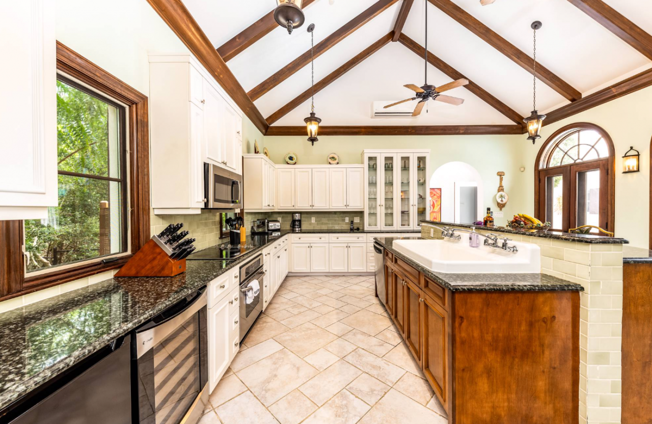 Casa Barana's west wing hosts the five large ensuite bedrooms. The master suite includes a bar sink, frige, and patio access with outstanding ocean view. Directly adjacent to the master is a large bedroom with two twin beds (can convert to king) - perfect for children. Guests will enjoy the serenity and peace of the large upper deck overlooking the entire property. Three additional bedroms are located on the main level and each have their own private entrance. The east wing hosts an ensuite bedroom, fully equipped gourmet kitchen, luxurious dining room, large great room and laundry area.