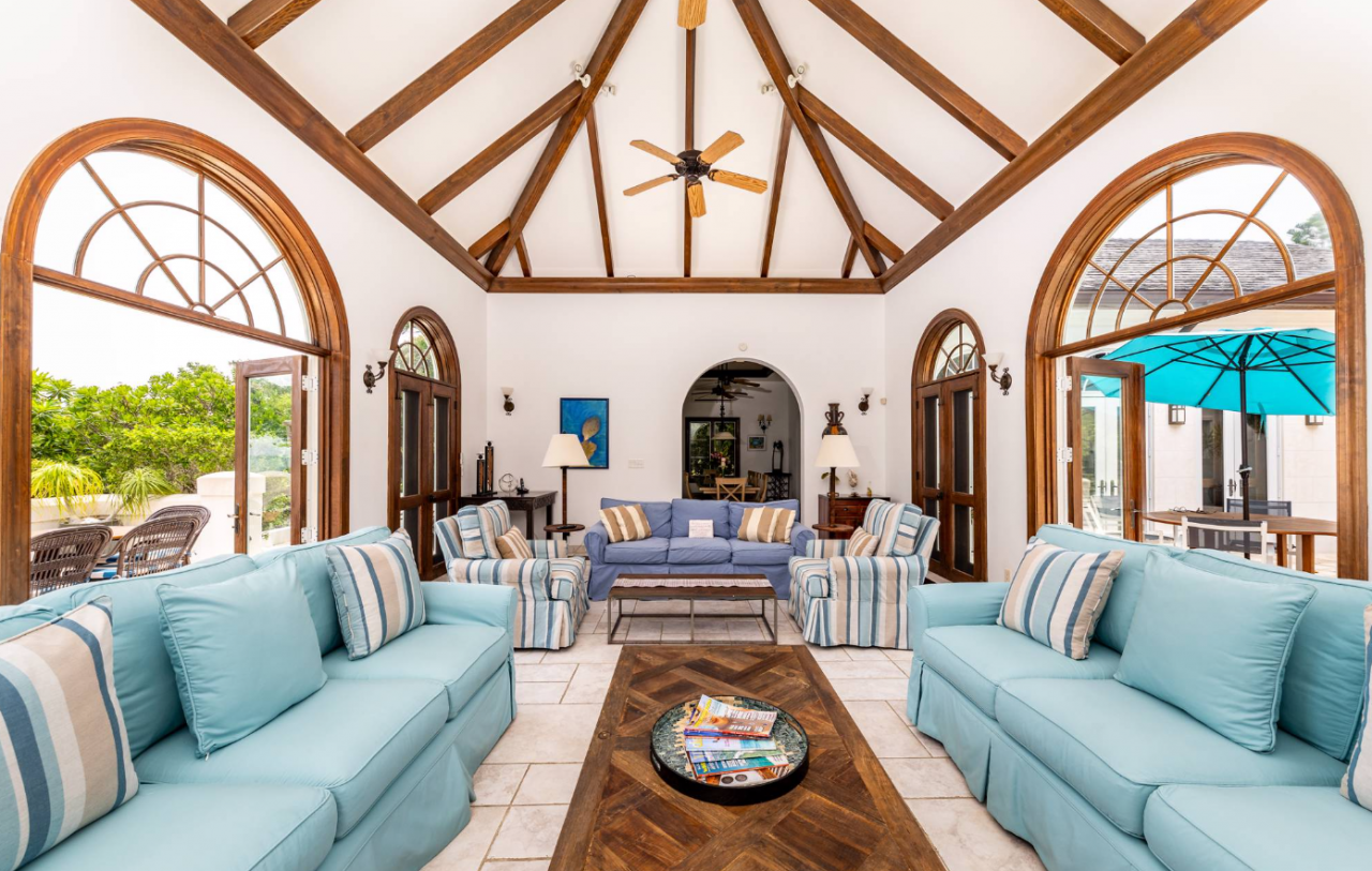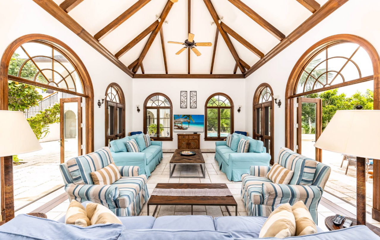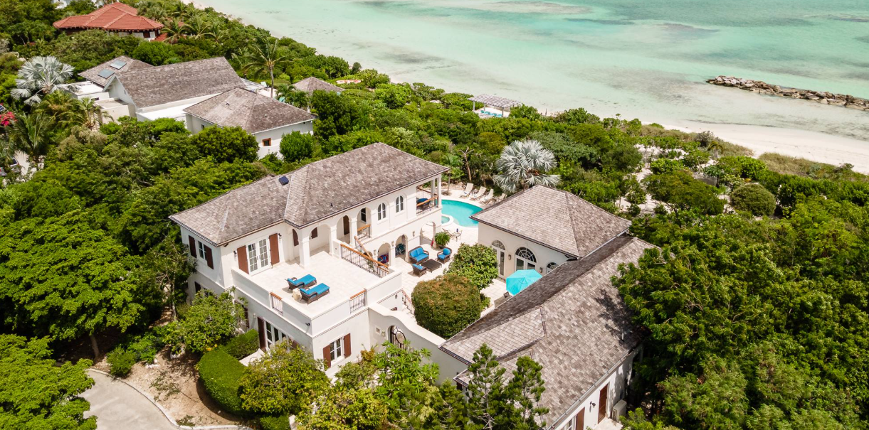 Casa Barana is a fantastic Tuscan-style beachfront villa located within the private gated community of Thompson's Cove. This 4,000 square foot villa is located on two acres with 135 feet of private ocean frontage.
