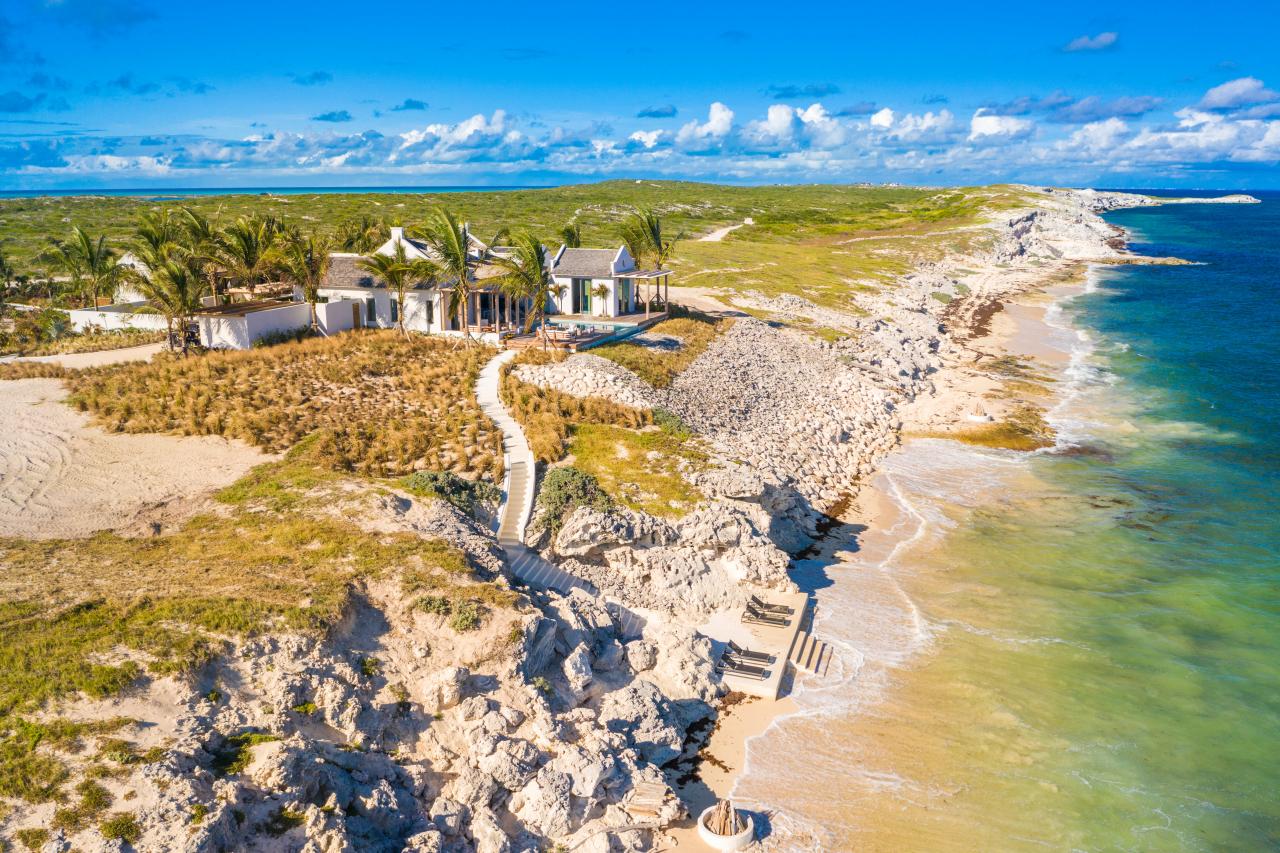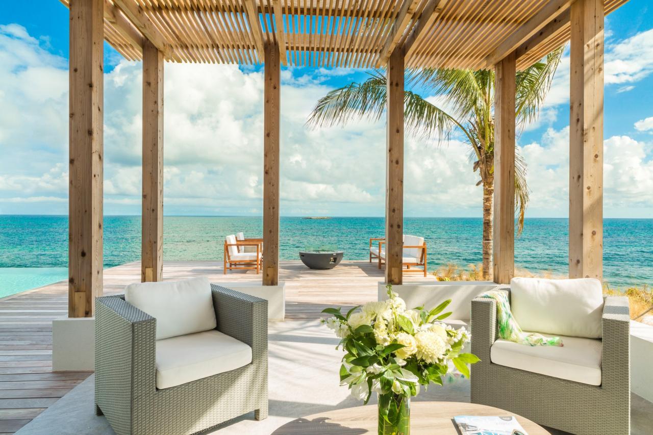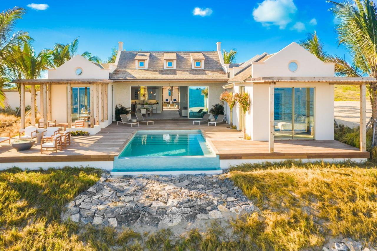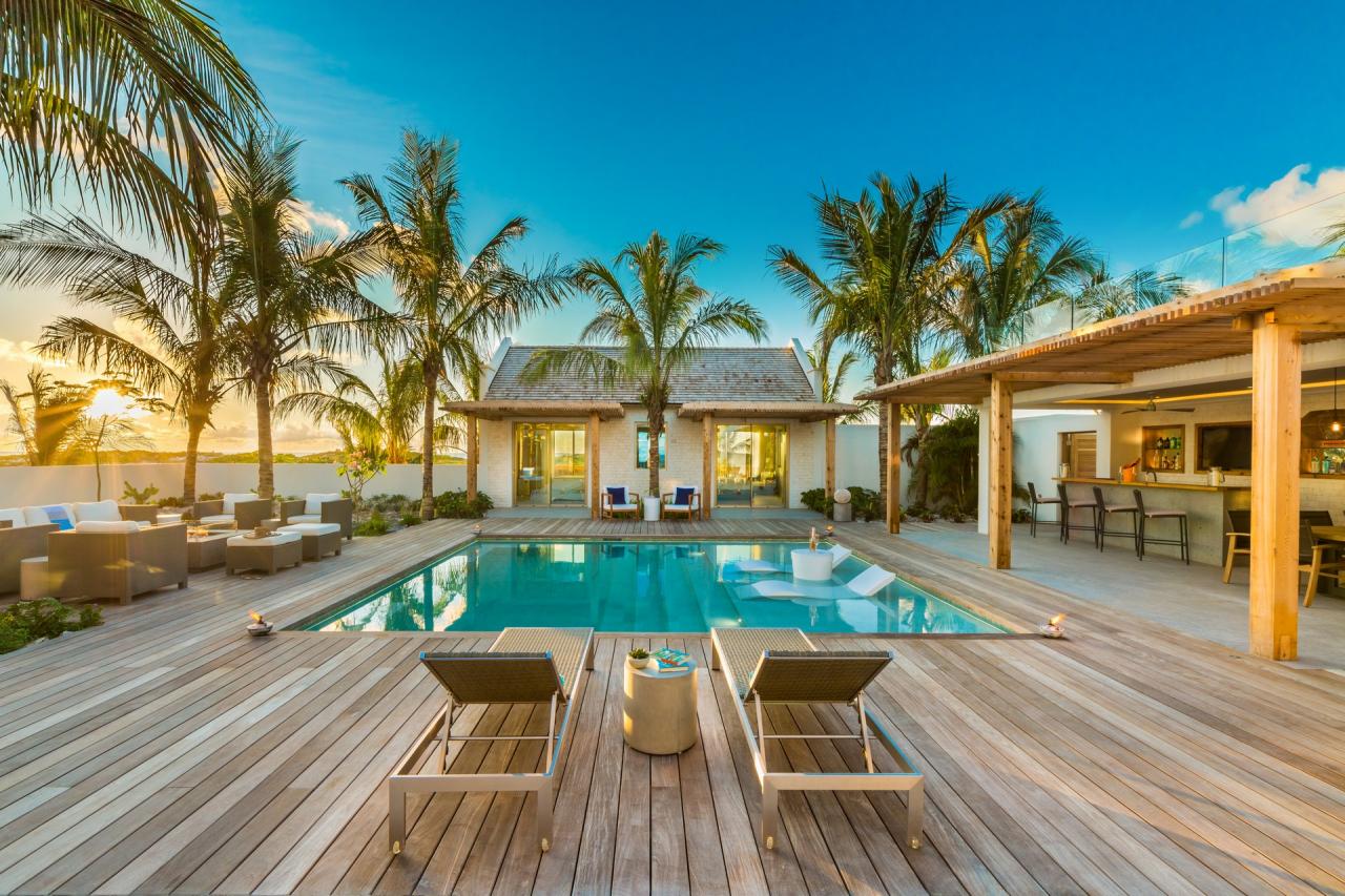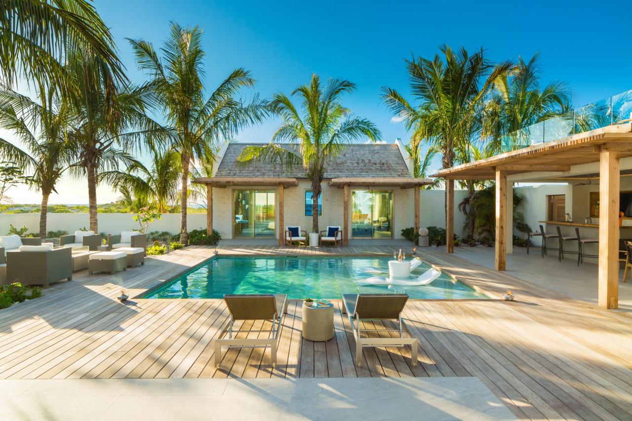 Dream Pavilion is an unbelievably picturesque villa with its own private beach in Ambergris Cay in Turks and Caicos. Dream Pavilion is a six-bedroom and six-bathroom villa. This remarkable villa offers lush tropical landscaping, three firepits, two heated pools, enclosed outdoor showers for the oceanfront master bedrooms, and personal electric golf carts for local transportation. This Turks and Caicos rental also features a full kitchen and dining area, eight large screen smart TVs, and stunning views of the surrounding nature.