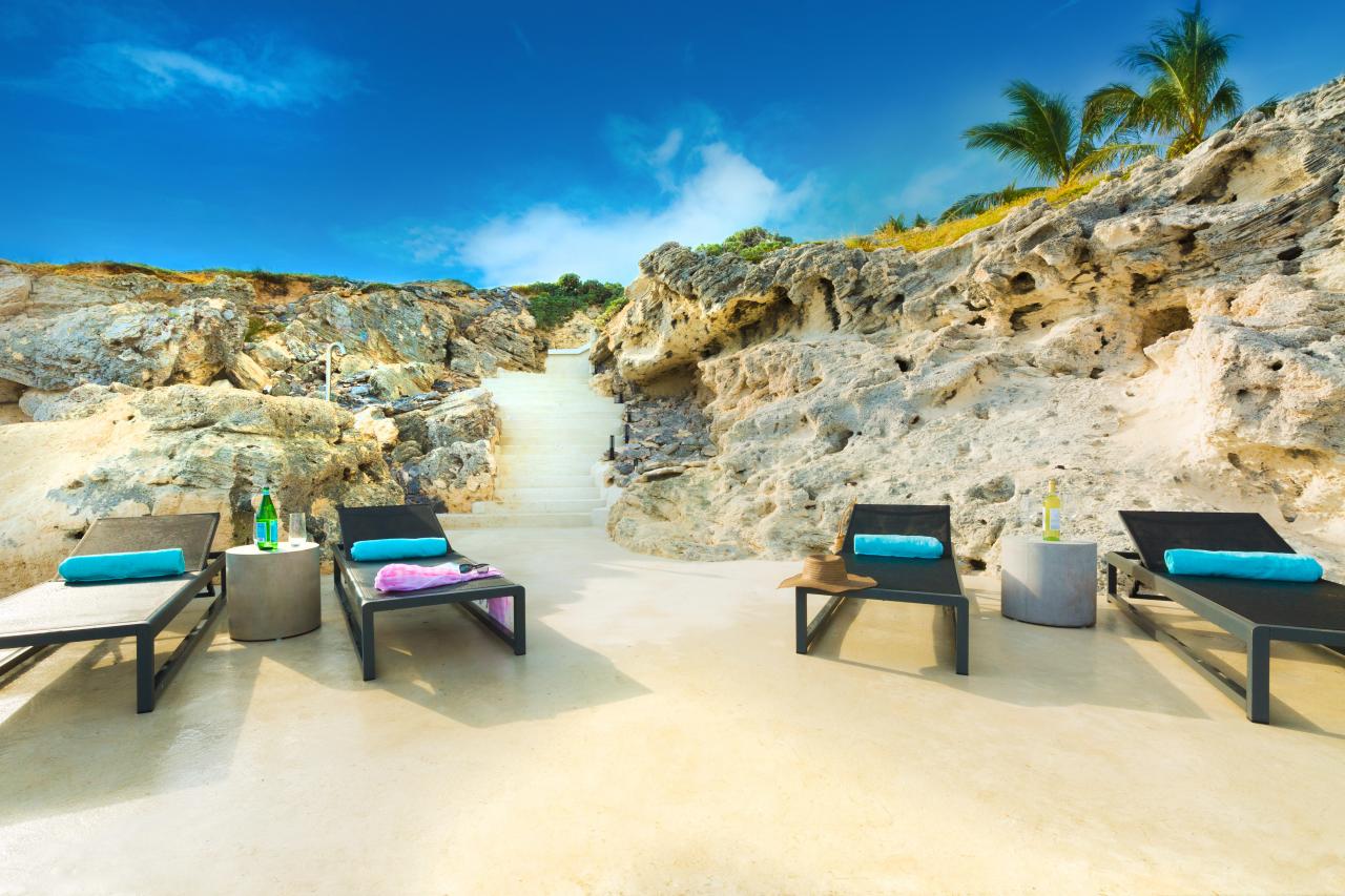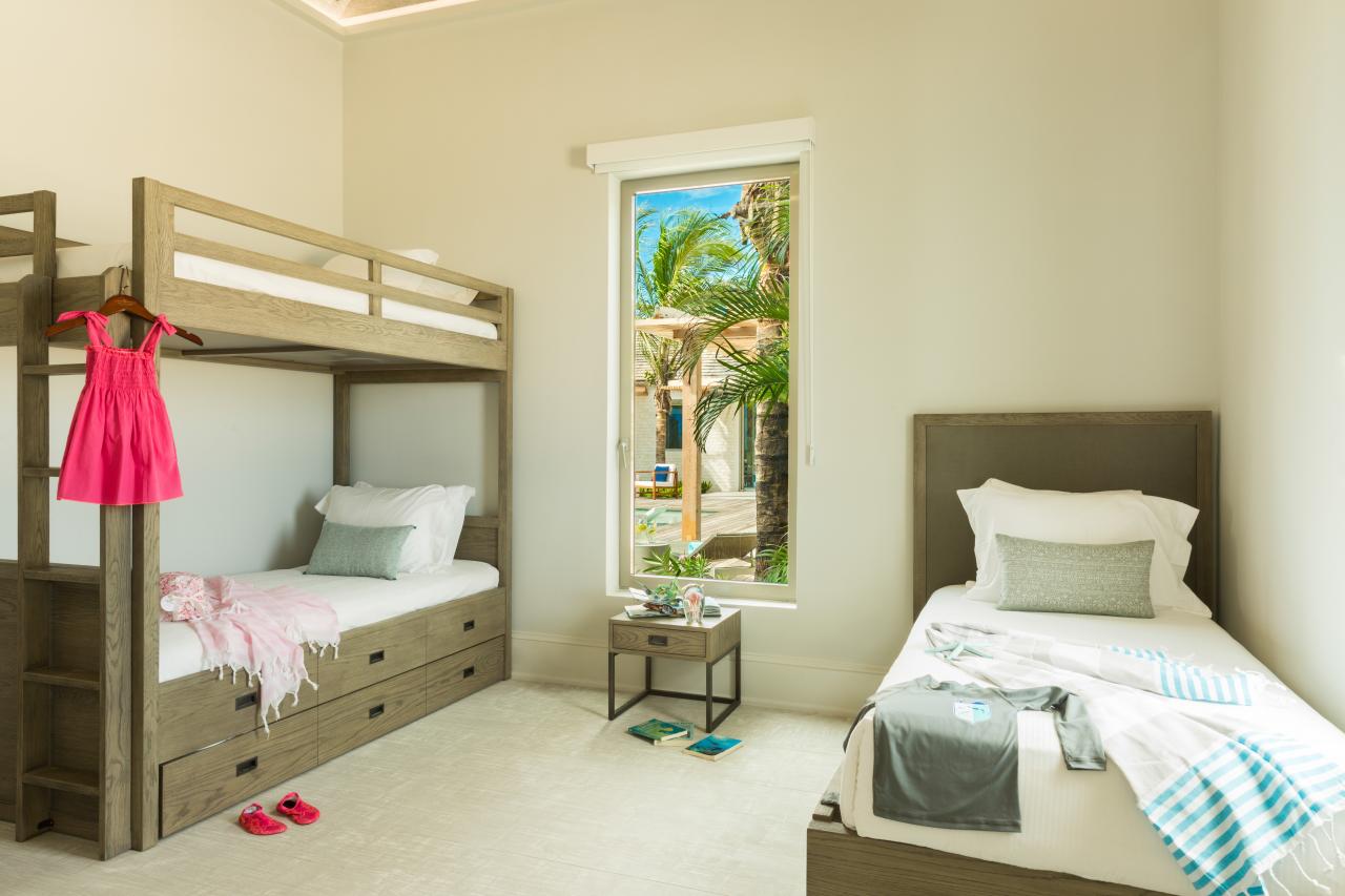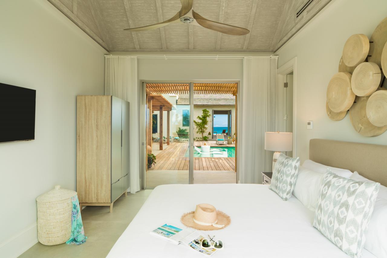 Bedroom 5: This room has a king-sized bed, ensuite bathroom, and a courtyard and Little Ambergris Cay view.