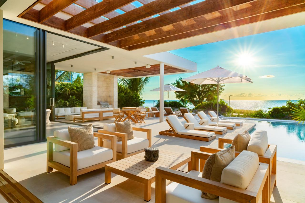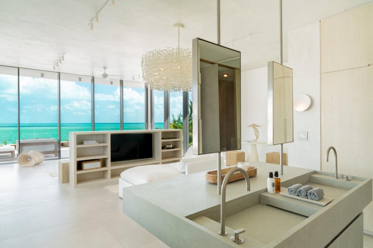 This Turks and Caicos rental offers eight bedrooms with ensuite bathrooms and an additional bathroom and a half. There are also ample amounts of indoor and outdoor spaces around Dune House for guests to lounge or dine to experience new scenery during their stay.