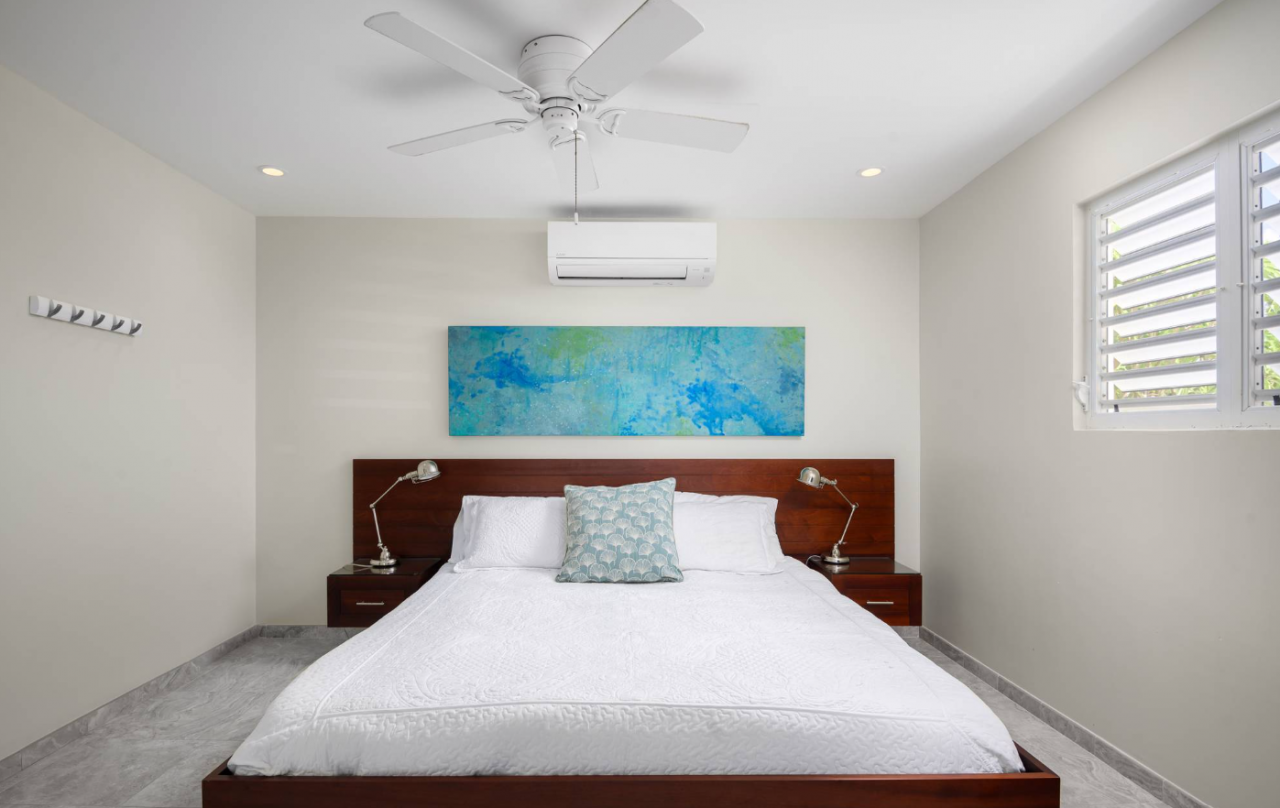 - Primary Bedroom: King size bed, Air conditioning, TV, Ceiling Fan, Ensuite bathroom