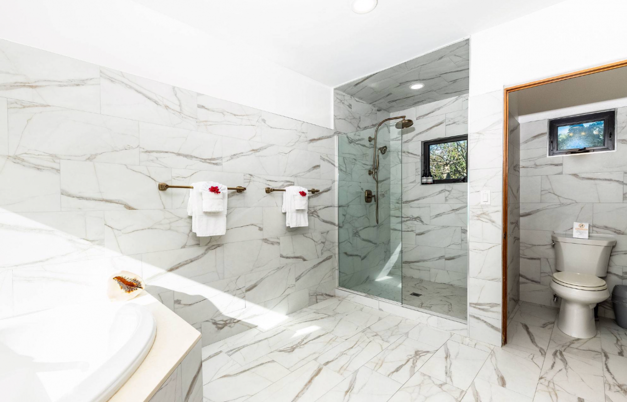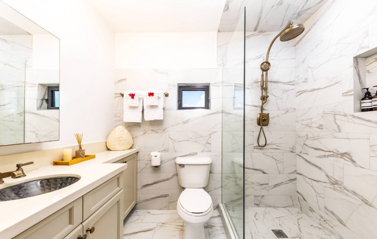 Bedroom 2: King bed, AC, en suite bathroom with shower