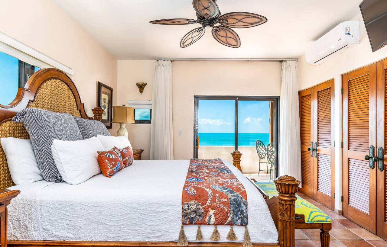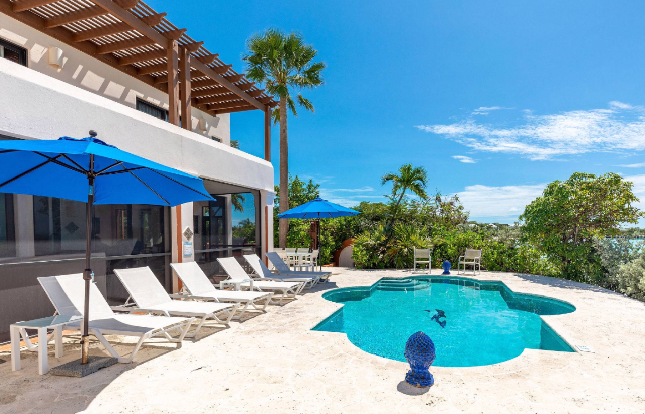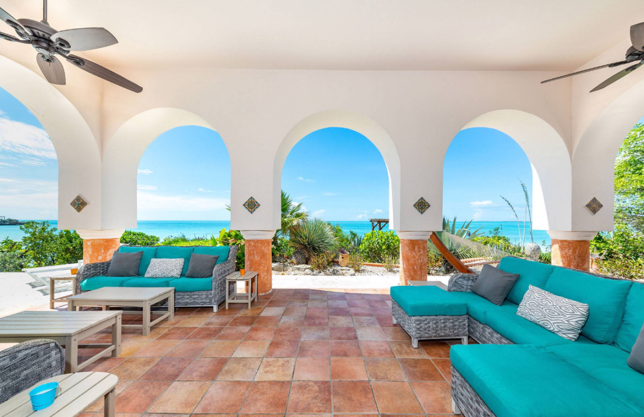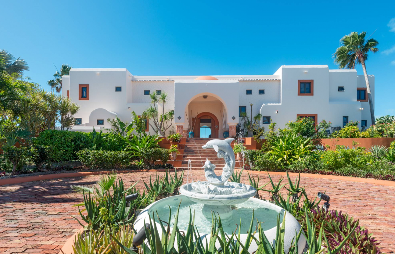 Privacy and luxury epitomize this Caribbean beachfront villa. Situated on Sapodilla Beach Cove on the southern coast of Providenciales, rooms enjoy a magnificent beach and ocean views of the scenic Bay. The two story Moroccan-inspired villa comprises 8,000 square feet. The gated estate villa has lushly landscaped gardens, stone pathways and outdoor patios; its interior is sumptuously furnished with fine collectibles, rugs and artifacts reflecting eclectic influences from Europe and the Orient. The entry leads to a grand sitting room opening onto the oceanfront patio with spectacular ocean views. La Koubba's ground level has a formal dining room and gourmet kitchen. Two staircases branch out from the main level hallway leading upstairs to 4 bedrooms with private balconies. All bedrooms are air conditioned and most have TVs. The property also has a guest cottage with a separate entrance from the front courtyard. This has one air conditioned bedroom with a king bed, ensuite bathroom, living/dining area with TV, kitchenette and private patio. The guesthouse is not rented to a separate party while the main villa is occupied, but can be rented along with the main to accommodate larger groups. Chef services, grocery provisioning, babysitting, spa therapist and additional housekeeping can be arranged on request.