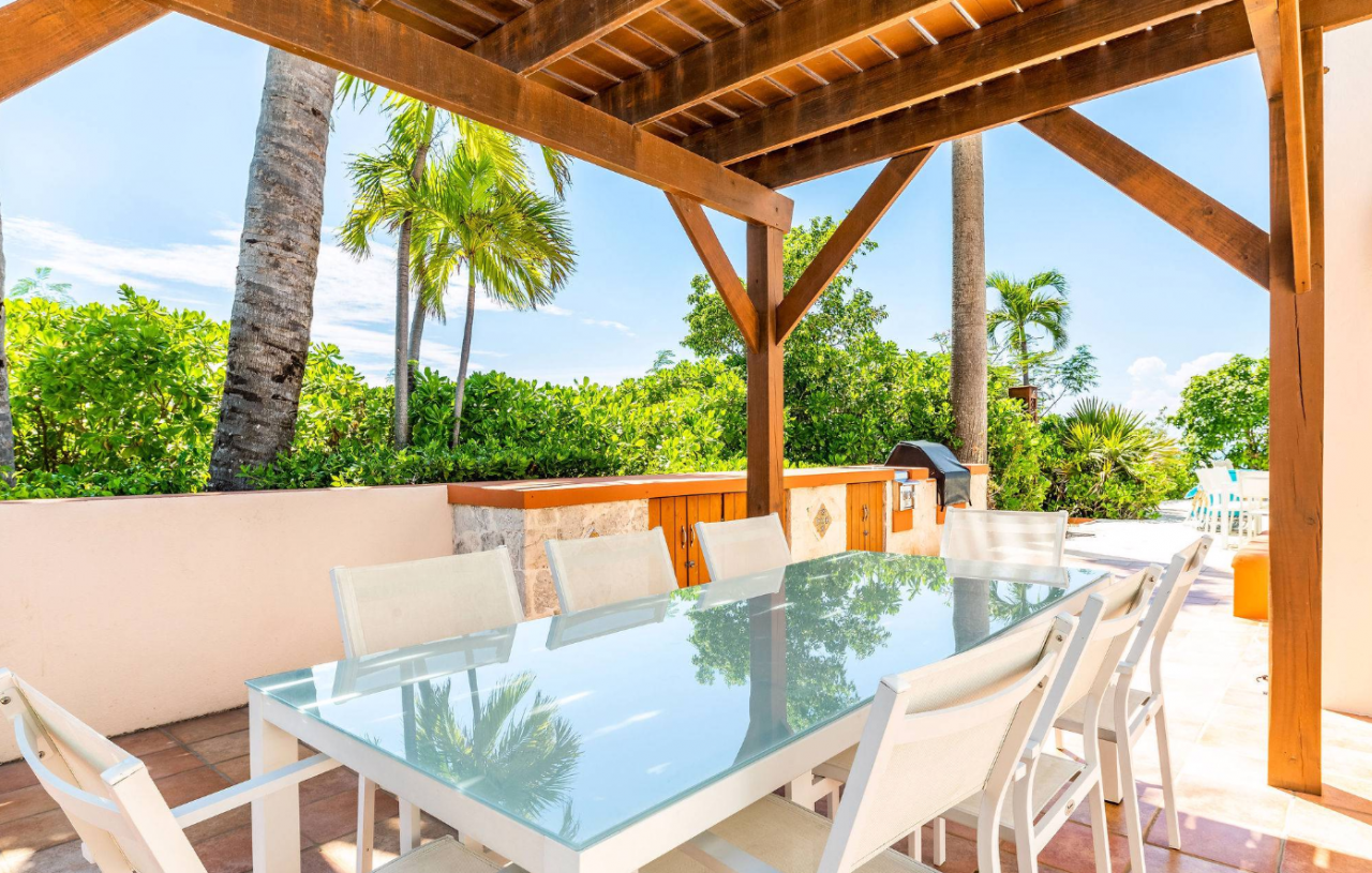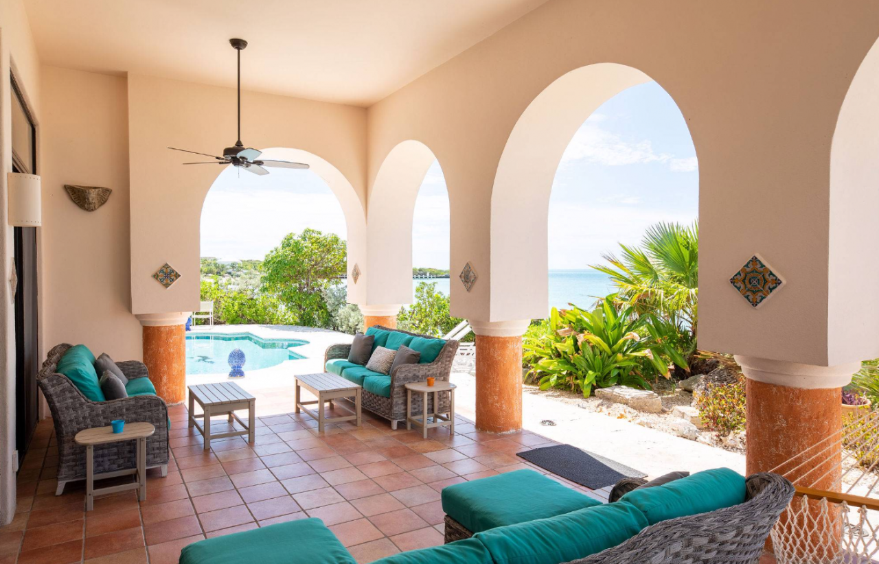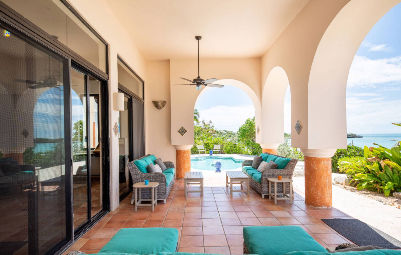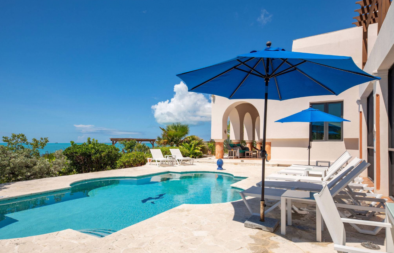 Privacy and luxury epitomize this Caribbean beachfront villa. Situated on Sapodilla Beach Cove on the southern coast of Providenciales, rooms enjoy a magnificent beach and ocean views of the scenic Bay. The two story Moroccan-inspired villa comprises 8,000 square feet. The gated estate villa has lushly landscaped gardens, stone pathways and outdoor patios; its interior is sumptuously furnished with fine collectibles, rugs and artifacts reflecting eclectic influences from Europe and the Orient. The entry leads to a grand sitting room opening onto the oceanfront patio with spectacular ocean views. La Koubba's ground level has a formal dining room and gourmet kitchen. Two staircases branch out from the main level hallway leading upstairs to 4 bedrooms with private balconies. All bedrooms are air conditioned and most have TVs. The property also has a guest cottage with a separate entrance from the front courtyard. This has one air conditioned bedroom with a king bed, ensuite bathroom, living/dining area with TV, kitchenette and private patio. The guesthouse is not rented to a separate party while the main villa is occupied, but can be rented along with the main to accommodate larger groups. Chef services, grocery provisioning, babysitting, spa therapist and additional housekeeping can be arranged on request.