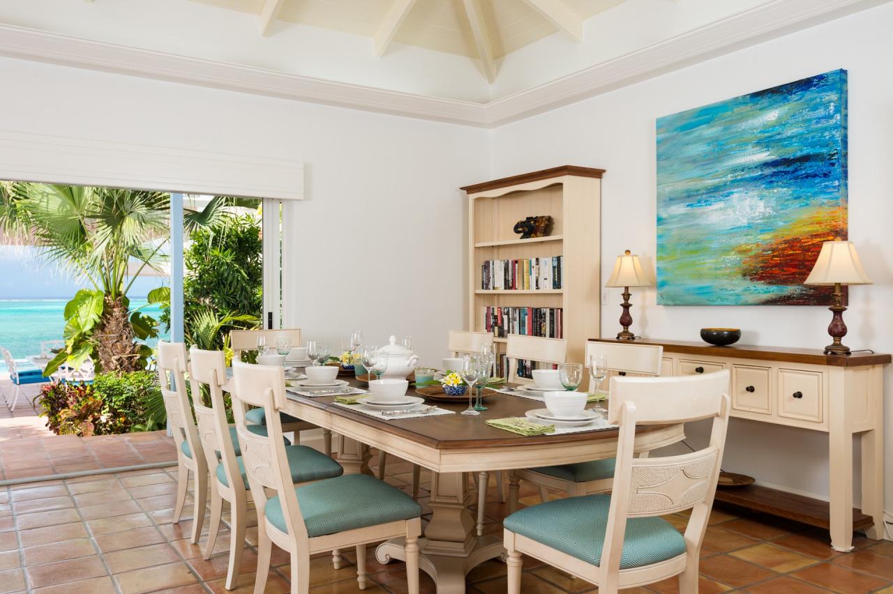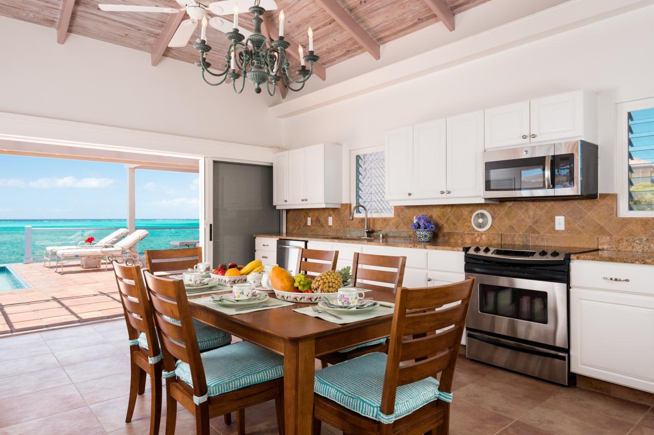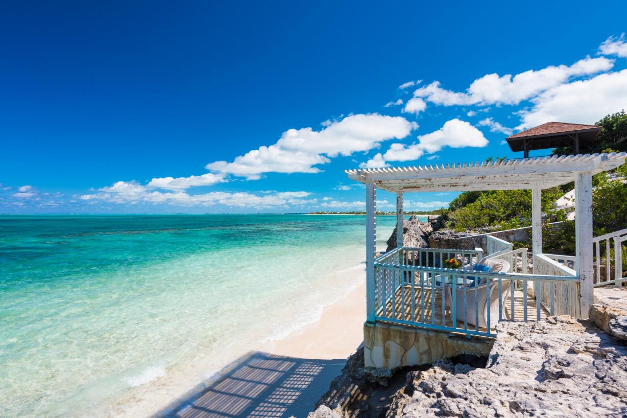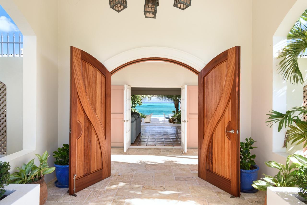 The carved stone path leads from this Turks and Caicos villa straight through the gardent to the beach. At low tide, the area has a pocket sandy beach where guests can enjoy snorkeling in the Princess Alexandra Marine Park (private section of the reef protected from boaters) and experience marine life up front and close. Babalue Beach is a quick wade away for beach available all day (through high tide).