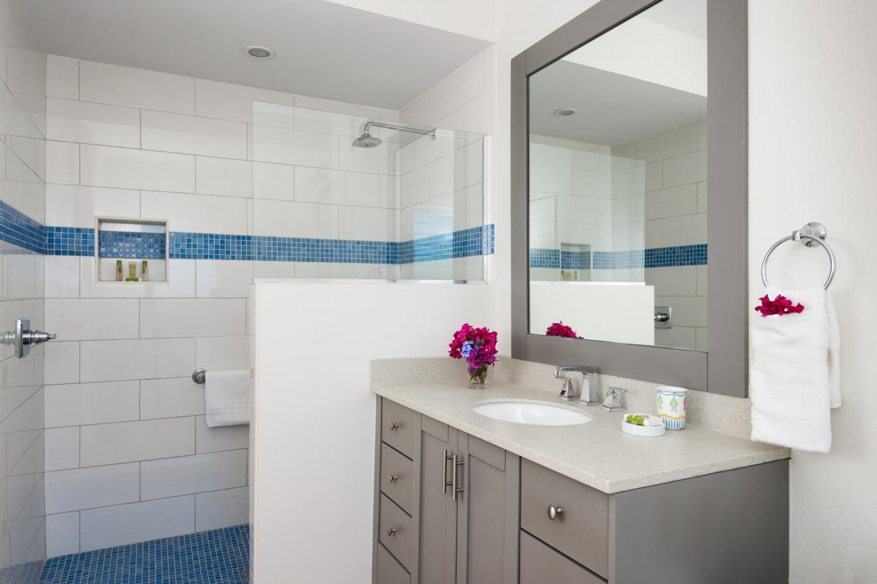 Reef Tides features four guest suites each decorated in their own Caribbean beach tone. Guests will find mirror image master suites - one in each of the East and West wings. Each have master suite includes a private balconies. Exterior staircases leading to the fourth suite.