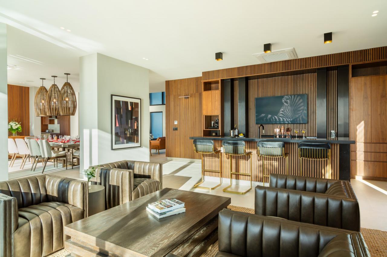Nestled on the scenic Turtle Tail peninsula, Villa Solara stands as a newly constructed Turks and Caicos vacation villa, boasting breathtaking ocean vistas. With a total of seven splendid bedrooms spread across two separate residences, guests can relish in the delights of family or group getaways while still savoring peace and serenity. The main house comprises five bedrooms, while the remaining two are housed in the adjacent guest villa, each meticulously designed with opulence and comfort in mind.