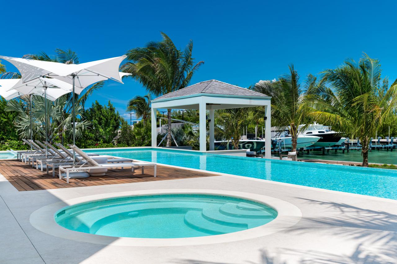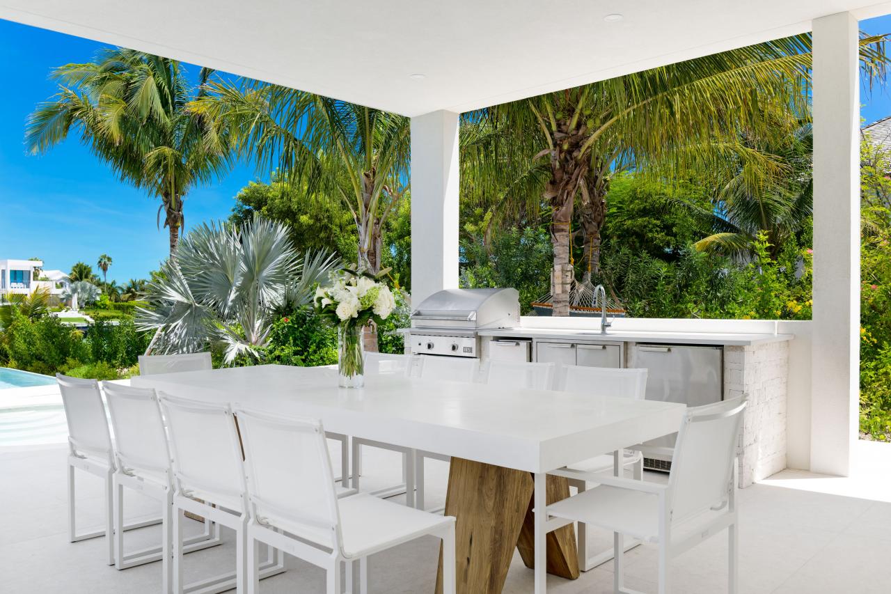 Solarah is a gorgeous Turks and Caicos rental that combines modern amenities with the tranquility of its natural surroundings, which creates a retreat for guests who are looking for comfort, relaxation, and outdoor enjoyment. This vacation rental in Turks and Caicos has five bedrooms, all with ensuite bathrooms. Guests will find a multi-depth swimming pool, submerged loungers, a hot tub, and a covered patio with a built-in barbeque when they enter the outside area. Solarah has the best area for guests to enjoy the setting Caribbean sun around the lovely fire pit. Guests at Solarah also can enjoy the private dock that is equipped with kayaks and paddleboards.