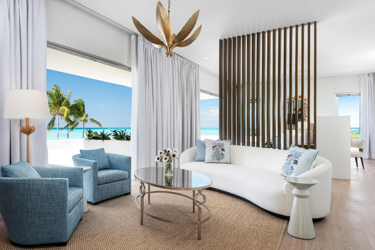 Bedroom 2: 1200 sq ft Principal Suite – King Bed, Living Room, Ensuite Bathroom with Bathtub and Shower, Oceanfront