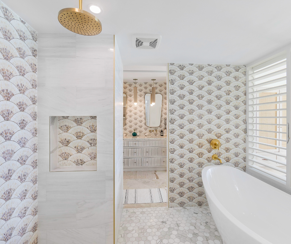 Bedroom 1: Principal with king bed, frontal ocean views, central AC, ceiling fan, ensuite bathroom with bathtub and outdoor shower