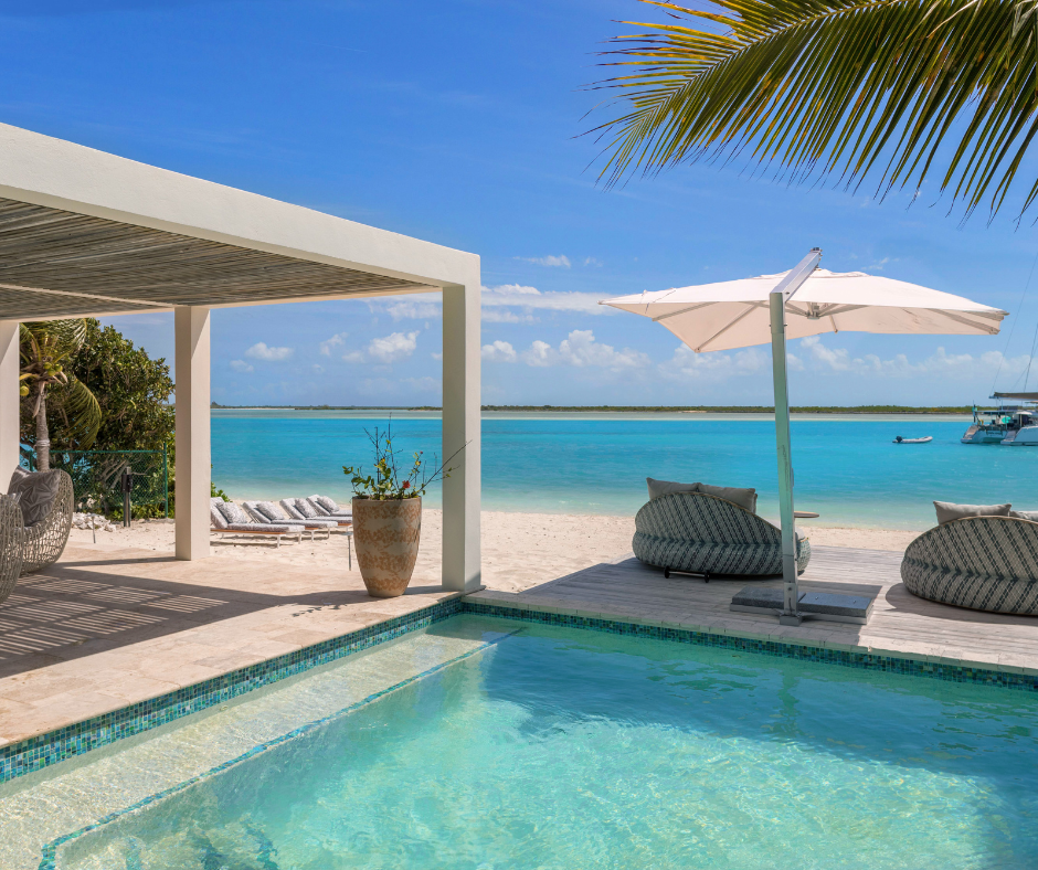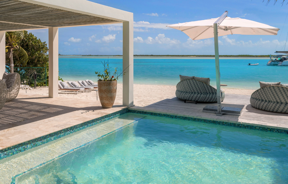 Villa Aquazure is a haven for water enthusiasts. Situated just south of Leeward Point, its beach connects to Pelican Beach and eventually Grace Bay Beach, offering eleven miles of adventure that can be enjoyed with the villa's two ocean kayaks.