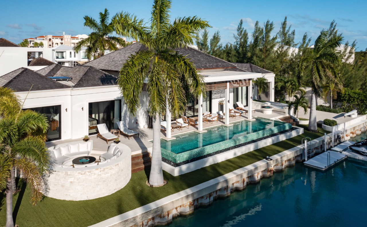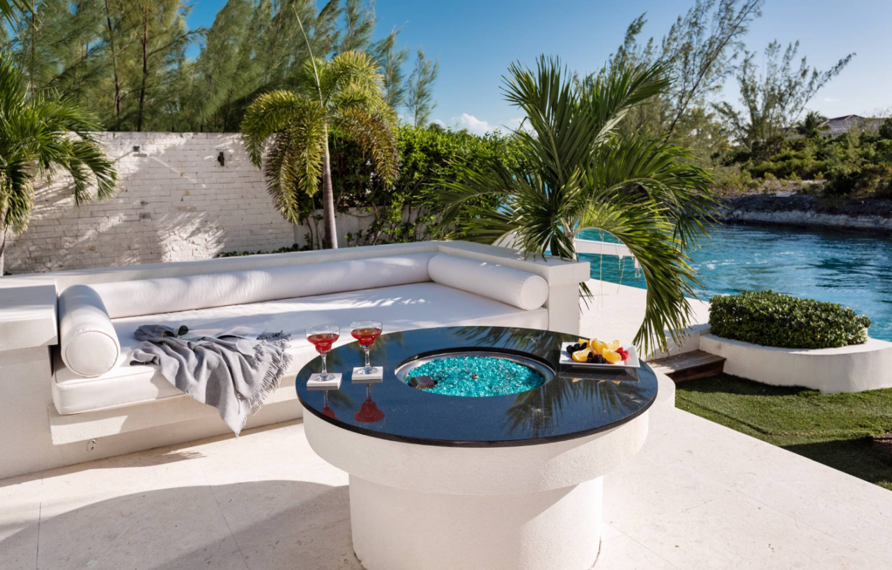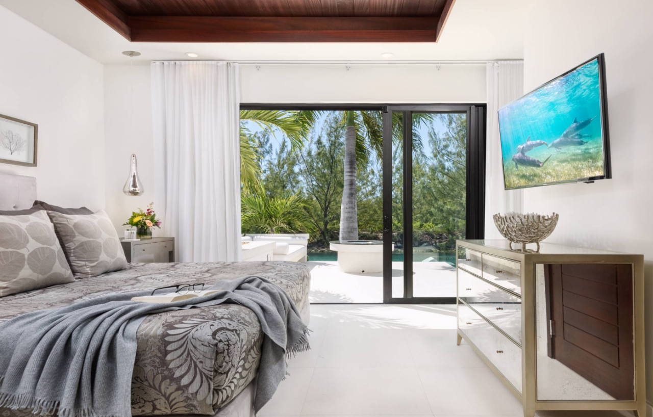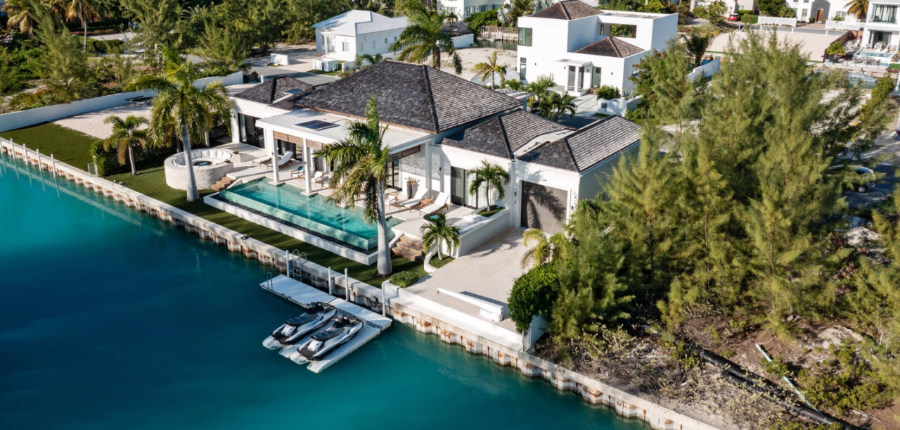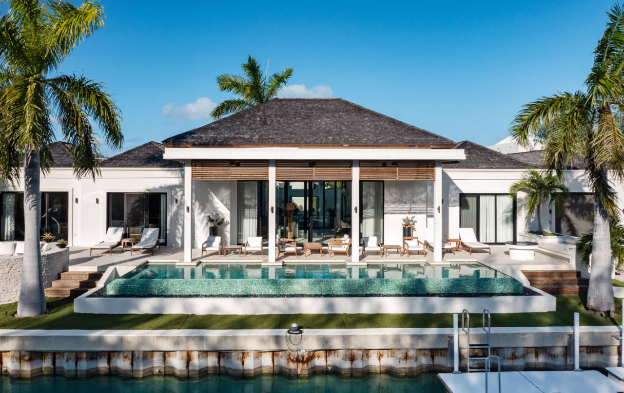 Villa Azimuth features a grand living room with an open floor plan, all bedrooms have ensuite bathrooms, and there is a full kitchen along with a kitchenette and bar. The outdoor living area offers two fire pits, a sound system, and a heated pool overlooking the turquoise waters of your canal. This Turks and Caicos villa rental also has non-motorized sports (kayaks, paddleboards, bicycles, and snorkeling gear), or you can get picked up for a half or full day private boating or snorkeling tour.