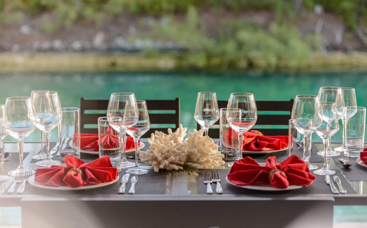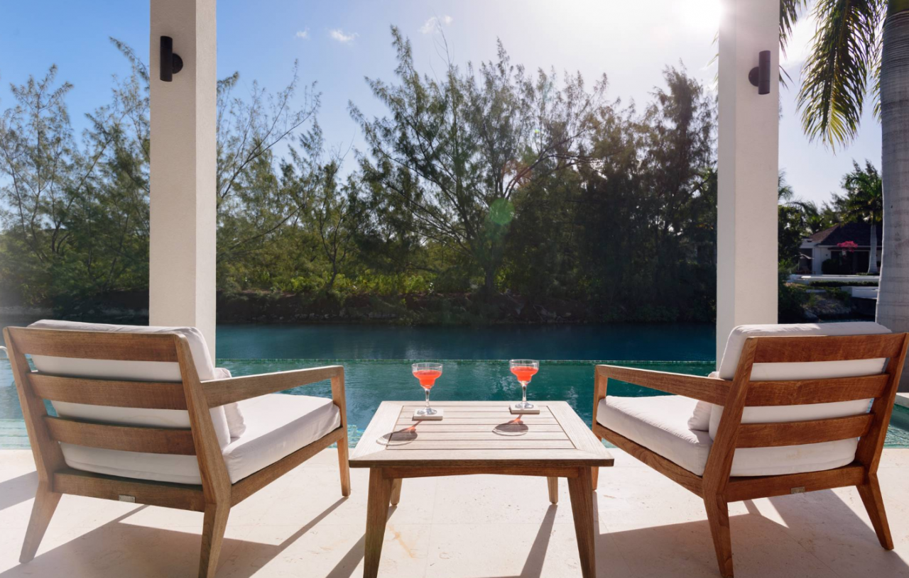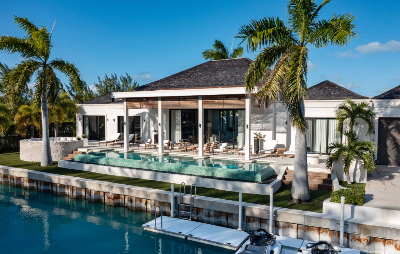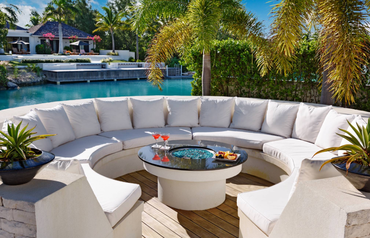 Villa Azimuth features a grand living room with an open floor plan, all bedrooms have ensuite bathrooms, and there is a full kitchen along with a kitchenette and bar. The outdoor living area offers two fire pits, a sound system, and a heated pool overlooking the turquoise waters of your canal. This Turks and Caicos villa rental also has non-motorized sports (kayaks, paddleboards, bicycles, and snorkeling gear), or you can get picked up for a half or full day private boating or snorkeling tour.