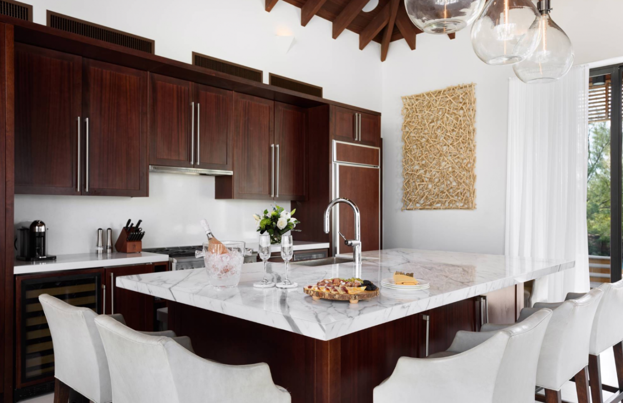 Villa Azimuth is a newly built three-bedroom Turks and Caicos rental located in Leeward. This Turks and Caicos villa offers a special, luxurious experience, as it includes all of the amenities of a large villa, on a more intimate scale. Guests of Villa Azimuth can just relax while the butler attends to everything else.