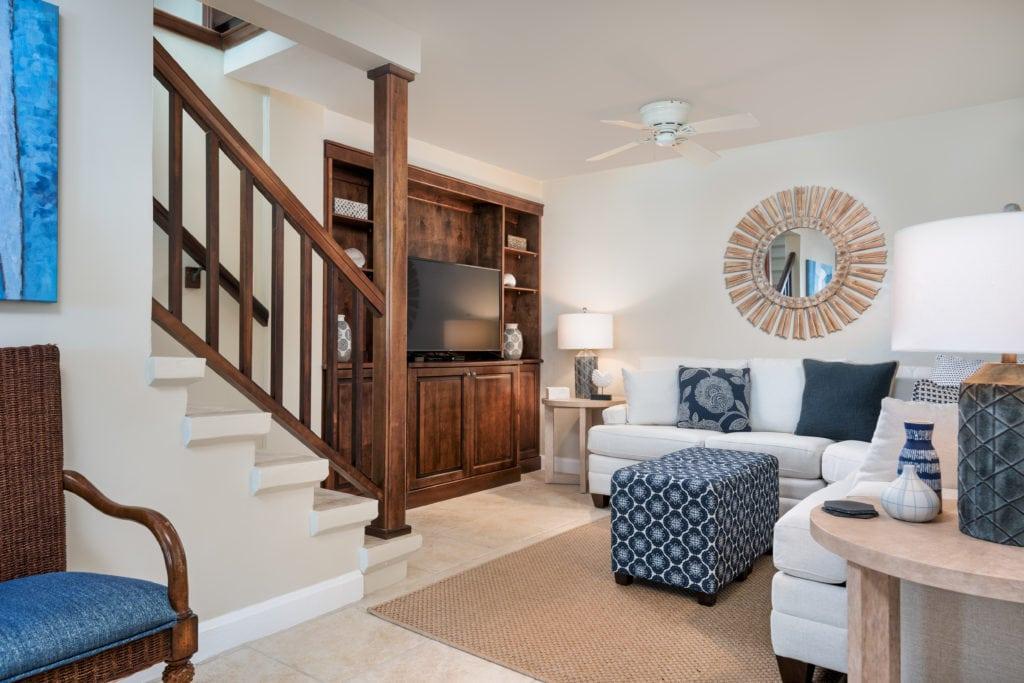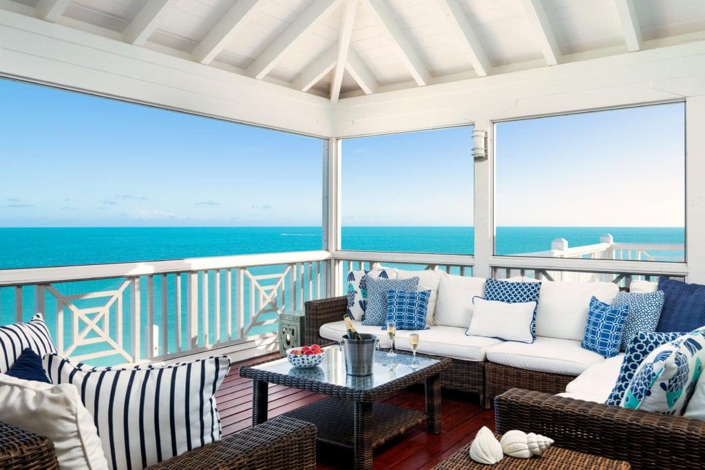 Villa Calypso takes oceanfront vacationing to a new level. Situated on Ocean Point, this spectacular vacation home is a beautiful example of traditional island style, with an open floor plan and a light and airy color palate. A spacious screened porch provides exquisite views of the bay, bringing the outdoors in. When the pristine turquoise waters beckon, their shallow warmth can be enjoyed from your own private ocean platform. Whether you’d prefer to jump in, or glide along on the villa’s kayaks, the choice is yours.