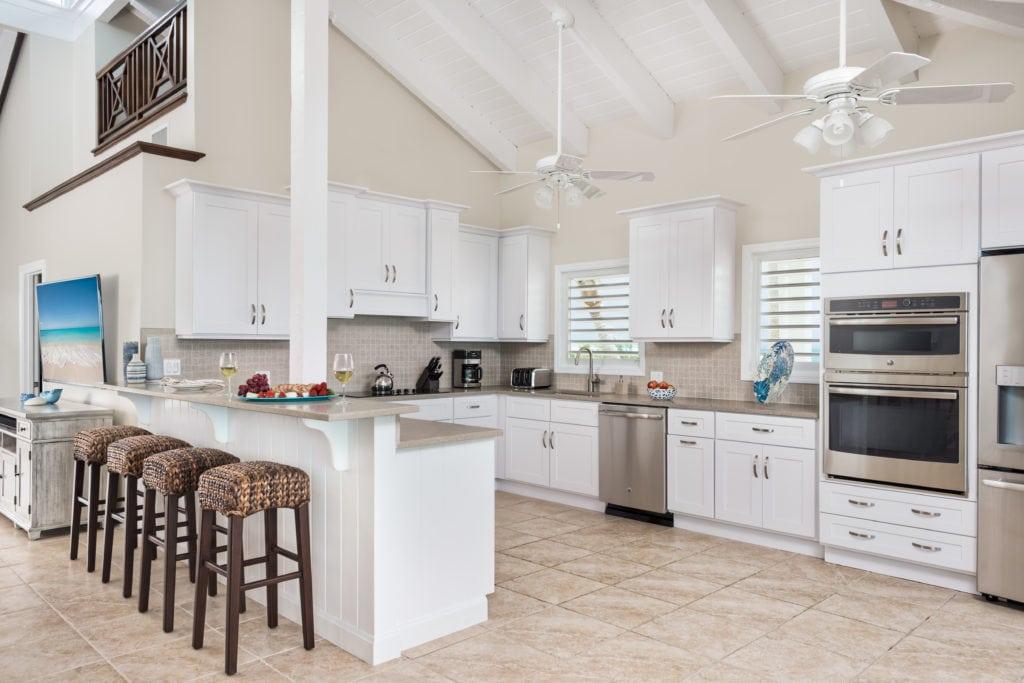 The home itself is flawless, with five bedrooms comfortably sleeping 10 guests. Each bedroom features a private bathroom, and every inch of the house is air conditioned to offer a cool reprieve from the Caribbean heat. The full kitchen and outdoor grilling area provide ample space to prepare a delicious meal with fresh seafood purchased nearby. Plus, if you feel like relaxing indoors, there are spacious lounging areas perfect for curling up in front of the TV.