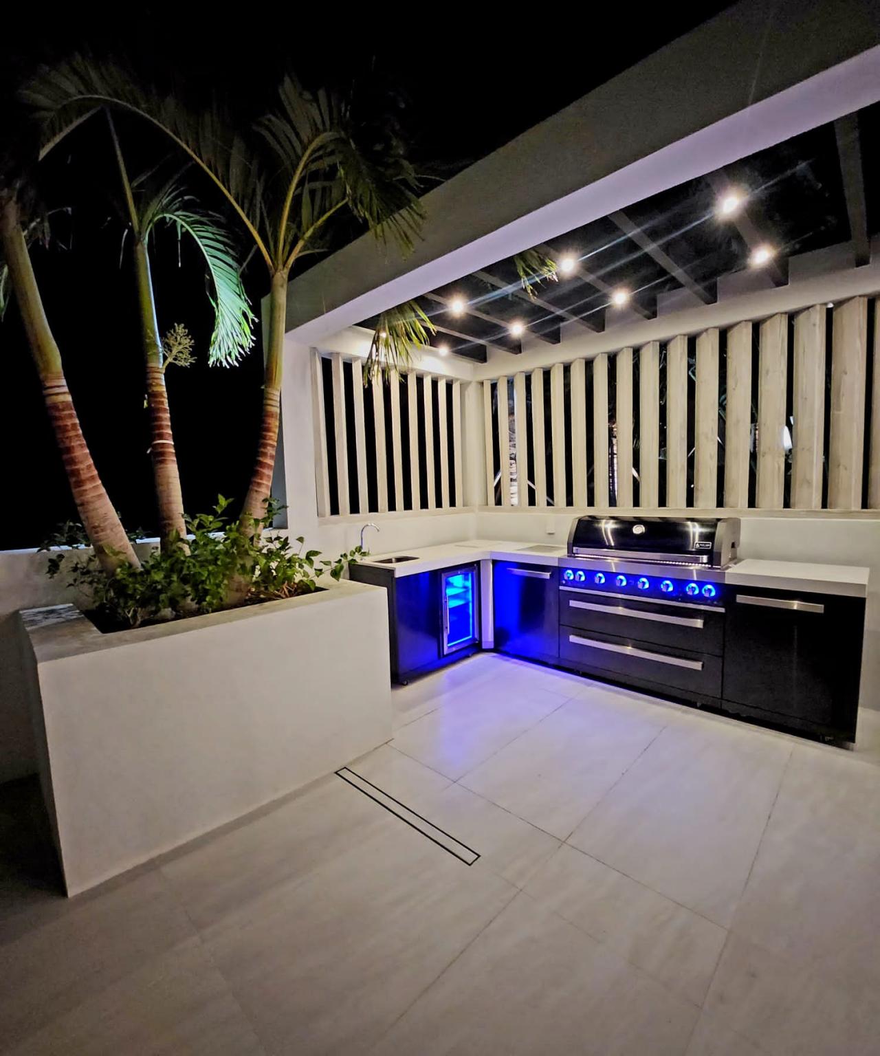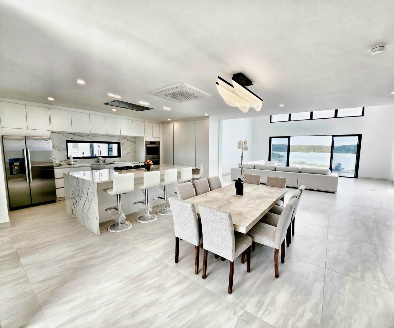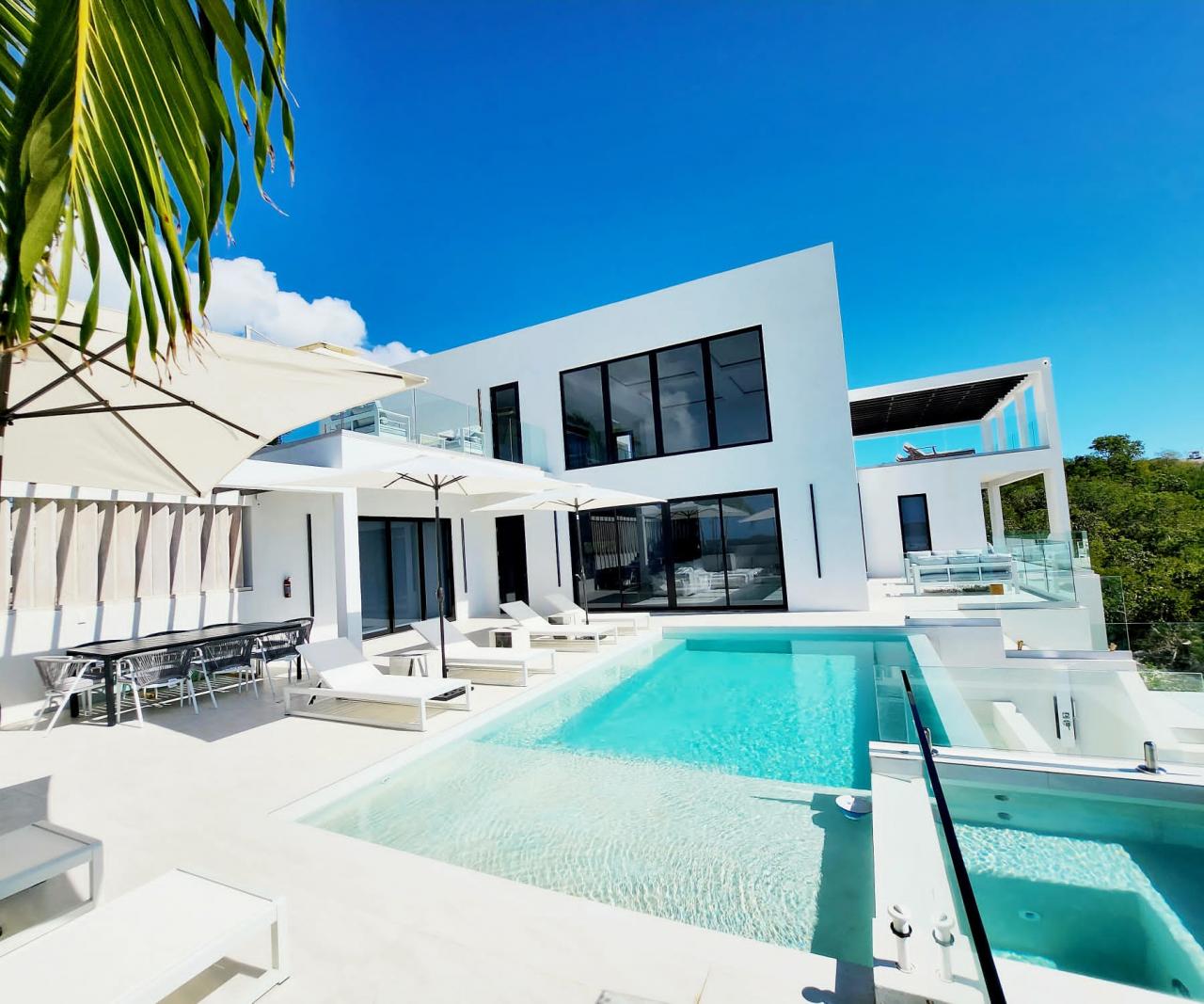 Relaxation and wellness are paramount at Villa Cielo, with the villa boasting its own yoga deck, fitness suite with steam room, and open-air home cinema under the stars. Outdoors, the clean lines of the dazzling white sundeck with BBQ, dining and lounging areas offer impeccable sunset views.