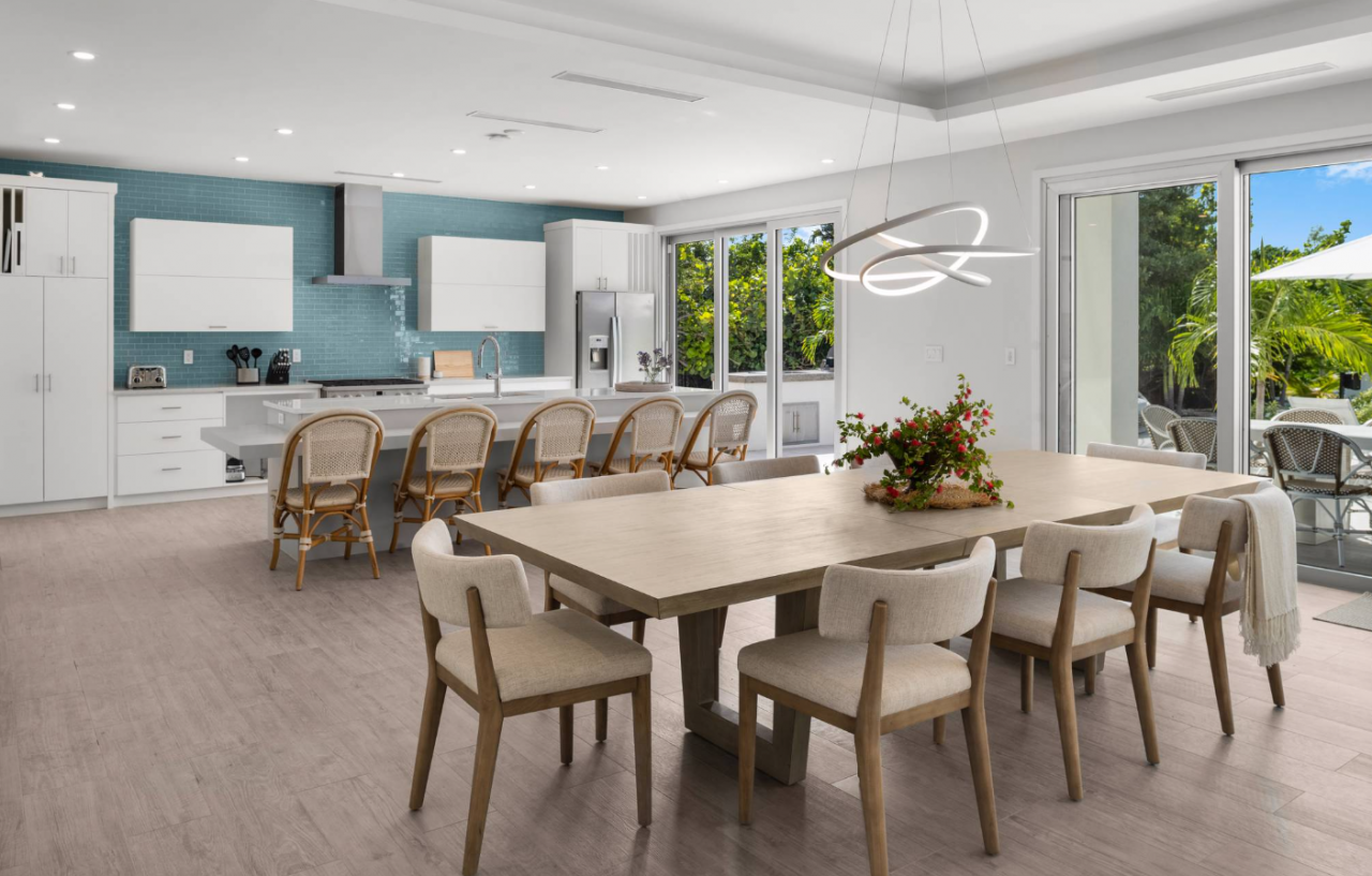 Furnished in November 2023, Villa Enandi features a spacious living room with an open floor plan, a fully equipped kitchen, a 6-seat island, and a 10-seat dining table. Each piece of furniture was carefully selected to harmonize with one another, seamlessly blending to fashion a cozy and chic living space. The outdoor living space is equally impressive, featuring a heated pool, a sizable dock for convenient excursions to pick you up directly at the property, as well as outdoor dining and relaxation areas. Additionally, there's a Weber BBQ grill for enjoyable entertaining experiences. For the adventurous guests, kayaks, paddleboards, and snorkeling gear are at your disposal, allowing you to fully immerse yourself in water activities. The extensive grounds of Villa Enandi are embellished with lush natural vegetation and tropical plants.