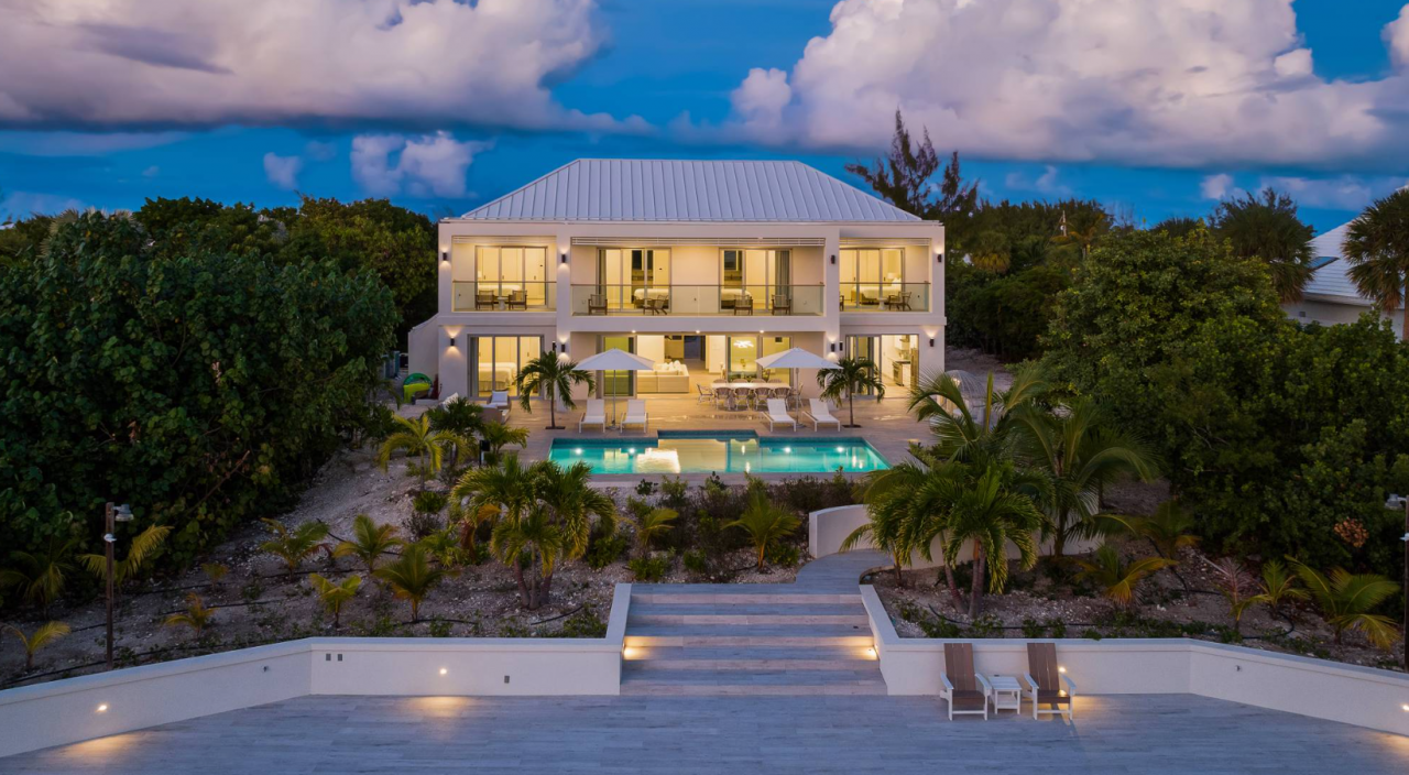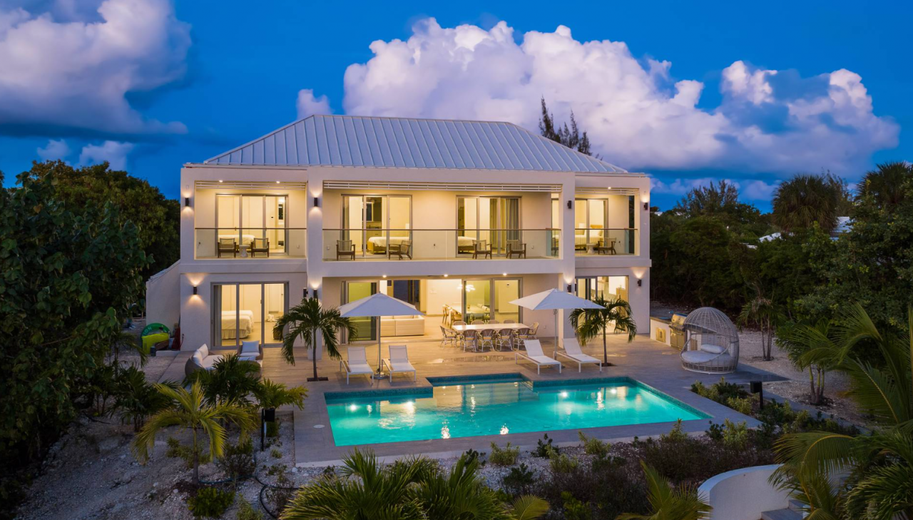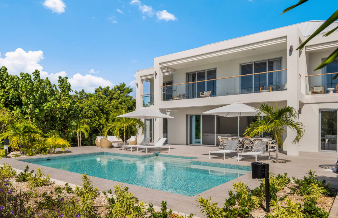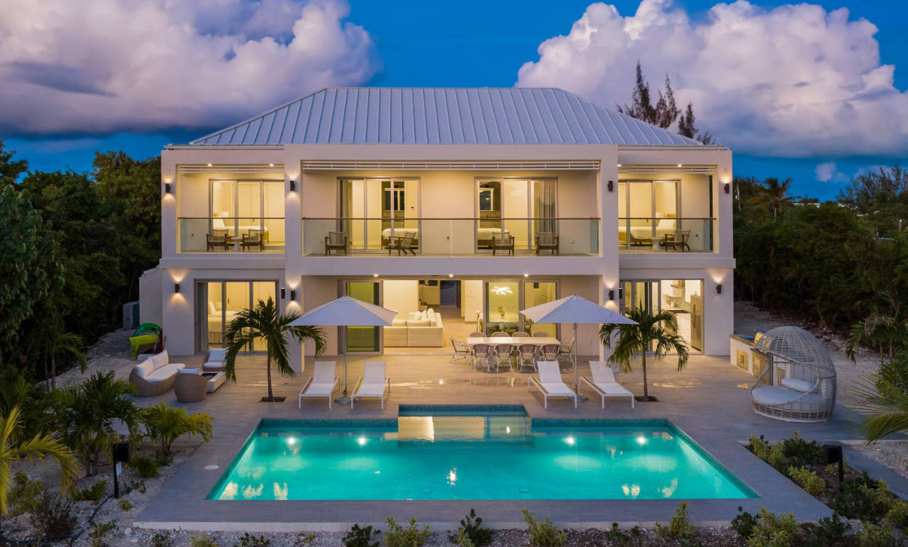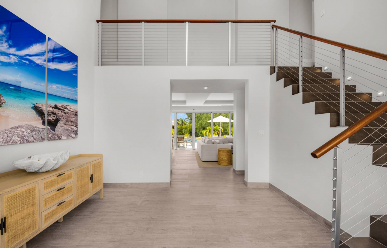 Villa Enandi, a newly constructed residence in 2023, boasts contemporary amenities and is situated in the coveted Leeward neighborhood in Providenciales, Turks and Caicos. This modern home, overlooking the Leeward canal, offers a two-story foyer that welcomes you upon entry.