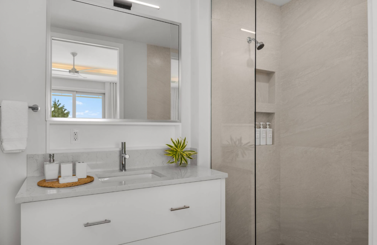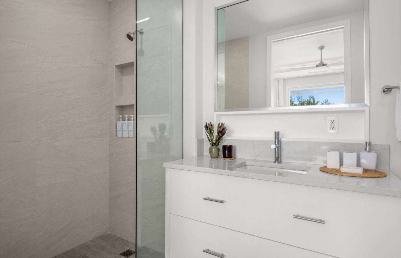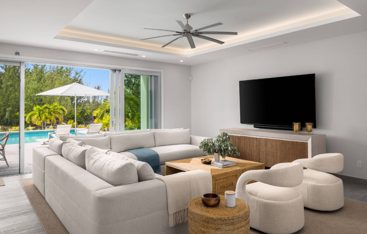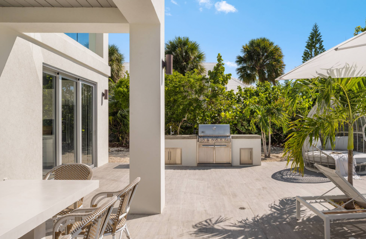 Villa Enandi, a newly constructed residence in 2023, boasts contemporary amenities and is situated in the coveted Leeward neighborhood in Providenciales, Turks and Caicos. This modern home, overlooking the Leeward canal, offers a two-story foyer that welcomes you upon entry.