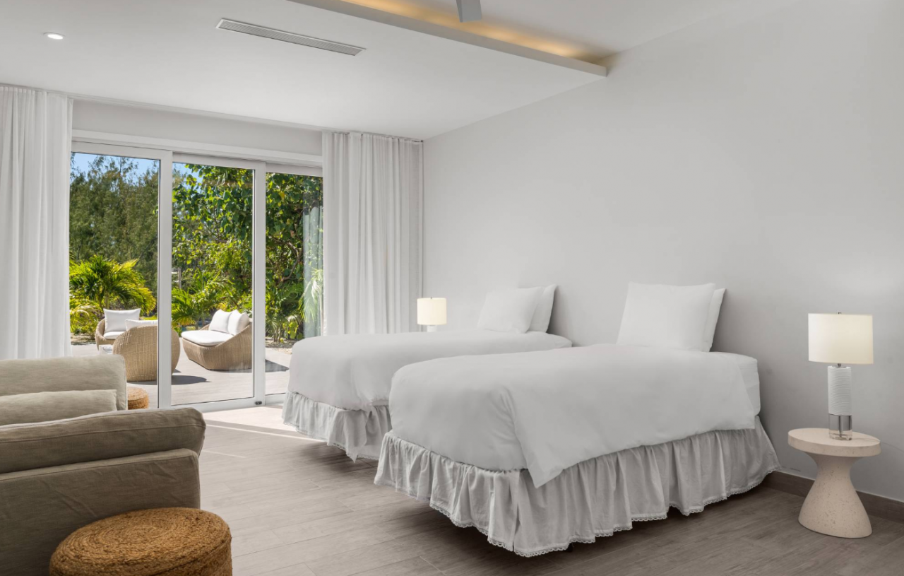 Bedroom 5: Also referred to as the Gaming Room, this room offers two twin beds, a sofa bed, ac, ceiling fan, ensuite bathroom, TV, Playstation 5 and walkout access to the pool area on the first floor.
