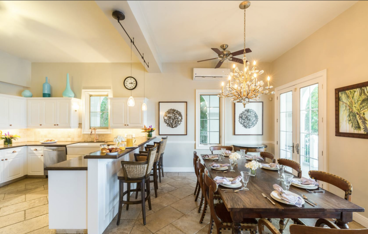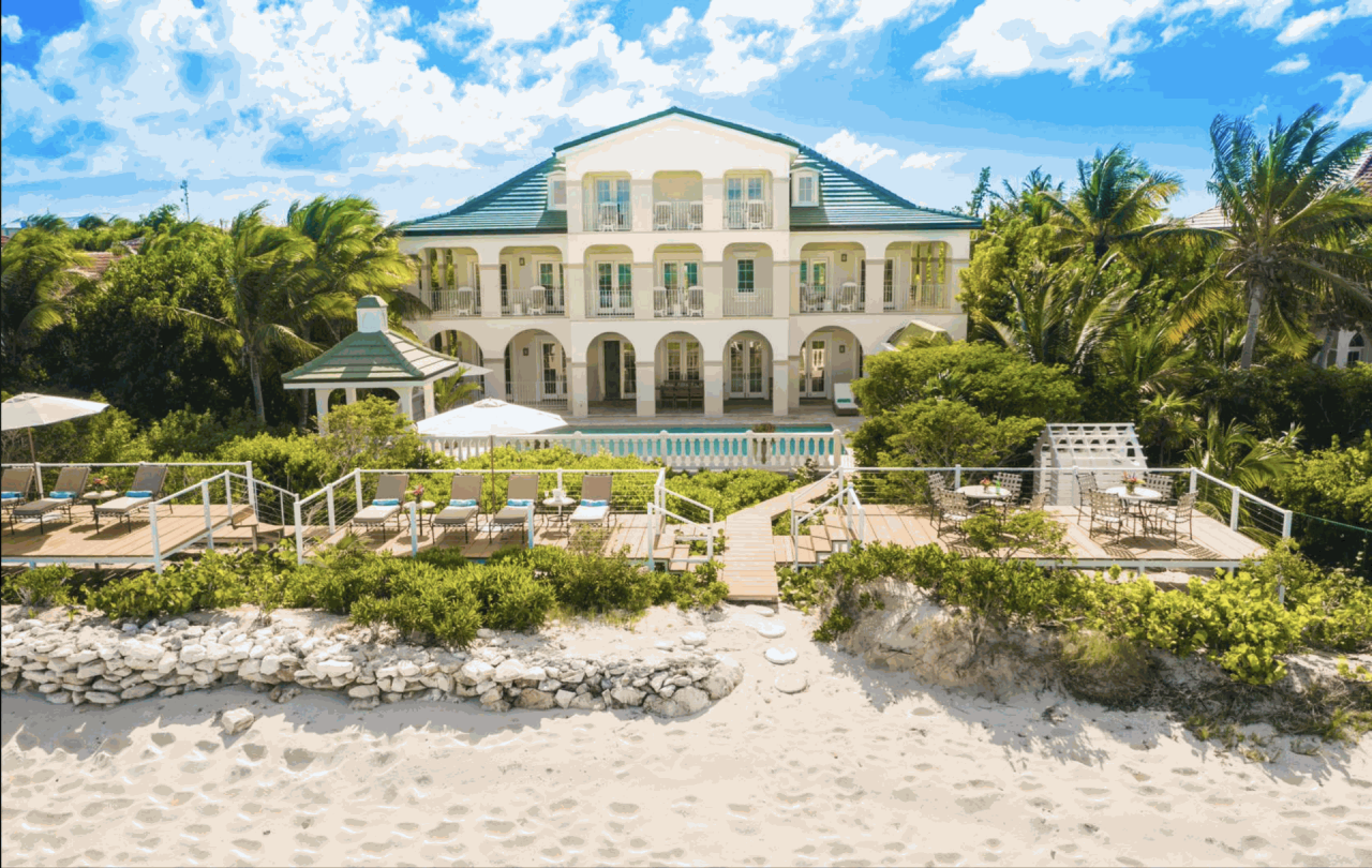 Villa Tamarind is a stunning home located on the east side of Grace Bay beach in Turks and Caicos. This beachfront home has 6 bedrooms and 6.5 bathrooms with ample space for both indoor and outdoor dinning.