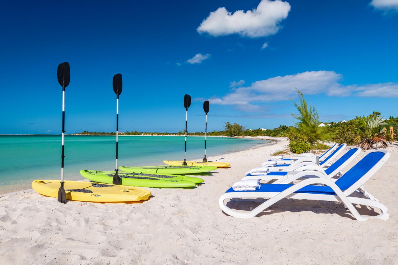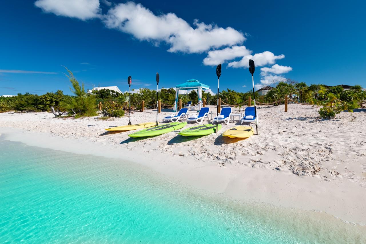 Villa Vamar is a newly renovated 4 bedroom luxury villas that sits on the beautiful Turks and Caicos beach. There are 5,400 square feet of living area between the shared spaces, 4 bedrooms, and 6 bathrooms. This Turks and Caicos villa also includes its own guest house, volleyball court, SUP's, fruit groves and a white sand beach. The villa is a 5 minute drive to the resort area of the island, known as Grace Bay, which has numerous restaurants, shops, and attractions.