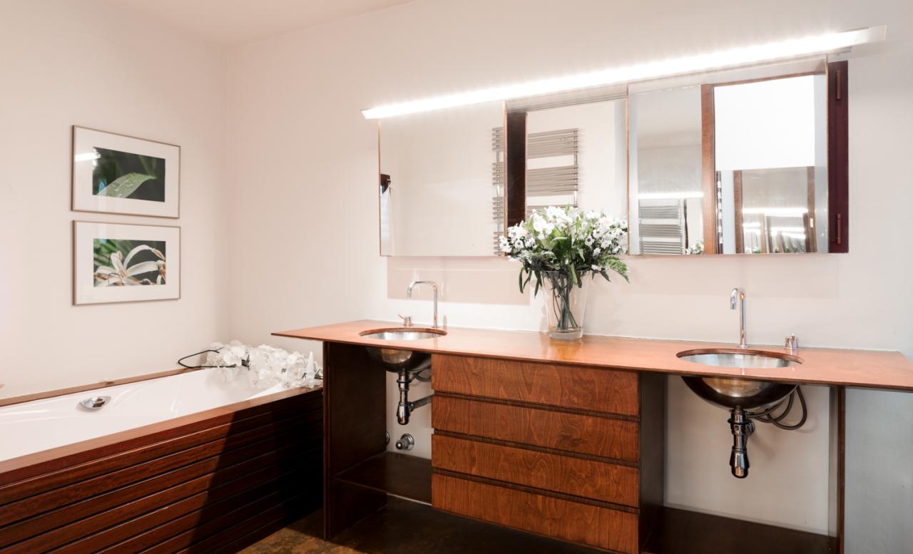 A long hall stemming from the home’s main entrance leads to the four guest suites. The far end of the home is occupied by the beautiful master bedroom with king size bed, walk in closet and en suite bathroom with separate tub and shower. Decorated to the height of taste, linen fabrics and cool colors create a calm and cozy atmosphere throughout the guest bedrooms, each of which have split king beds and en suite bathrooms with showers, making this home perfect for couples, singles and children alike.
