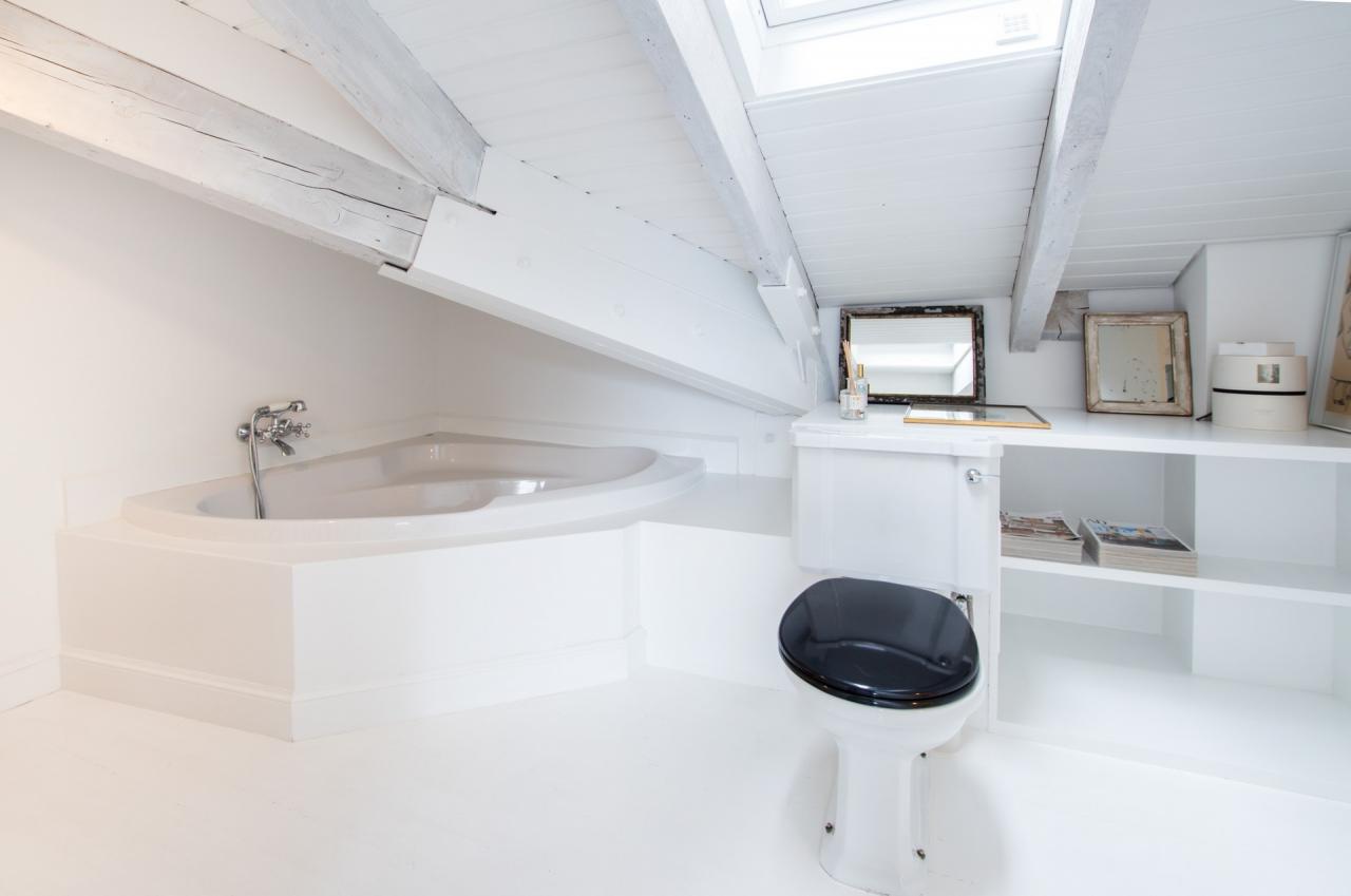 The top floor of Villa 1904 offers a clean, white finish, mixing modern and traditional style with colorful furniture pops throughout. Sitting center stage, a home theater with 9’ x 6’ movie screen and surround sound is upstaged only by the room’s large balcony overlooking Barcelona in all its glory. Accompanying the theater on the uppermost level are three additional guest bedrooms, each with its own en suite bathroom. The first is a king bedroom with mountain views as well as a bathtub and shower in the en suite, while the final two guest bedrooms are perfect for children. One bedroom boasts two twin size beds with twin trundles underneath each and more mountain views, while the other bedroom has a single extra long twin with trundle bed underneath, enjoying sweeping views of the city and the Mediterranean Sea. The en suite bathrooms for both children’s rooms have separate tub and shower.